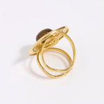 A new addition to our best selling Roma Styles- the Roma Ring in tigers eye. Featuring a domed tigers eye gemstone set in to a ridged gold-plated silver edging and embellished with clear crystal, on an adjustable band. A chic, modern classic that you will wear for years.
