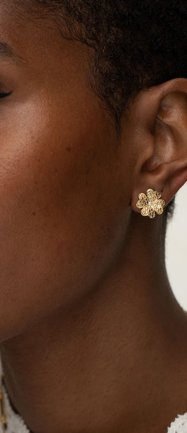 Clover Solid Gold & Diamond Stud Earrings, 9k Gold