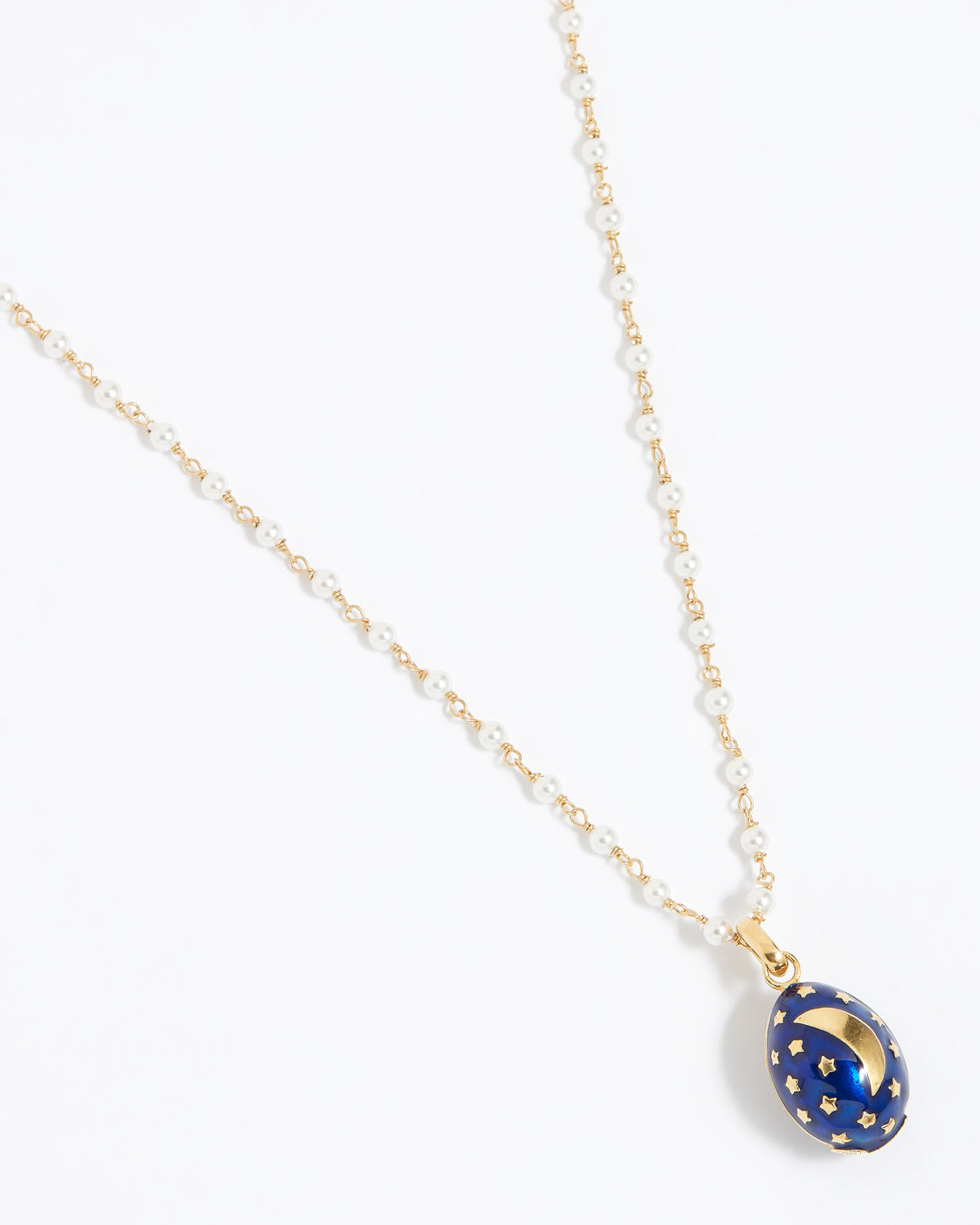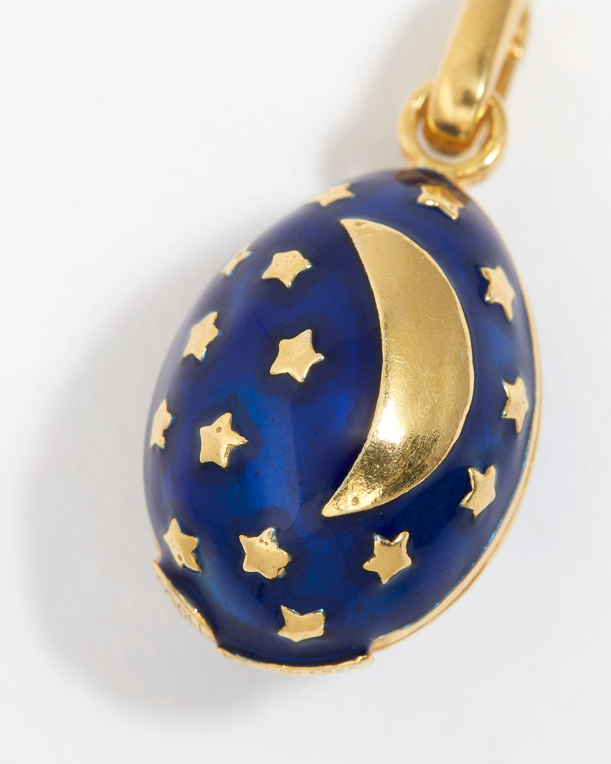 Add a pop of colour to your charms collection with one of our Astoria Charms. 3 beautifully decorated enamel egg charms, our Midnight charm features gold stars and moon set against a deep blue backdrop.