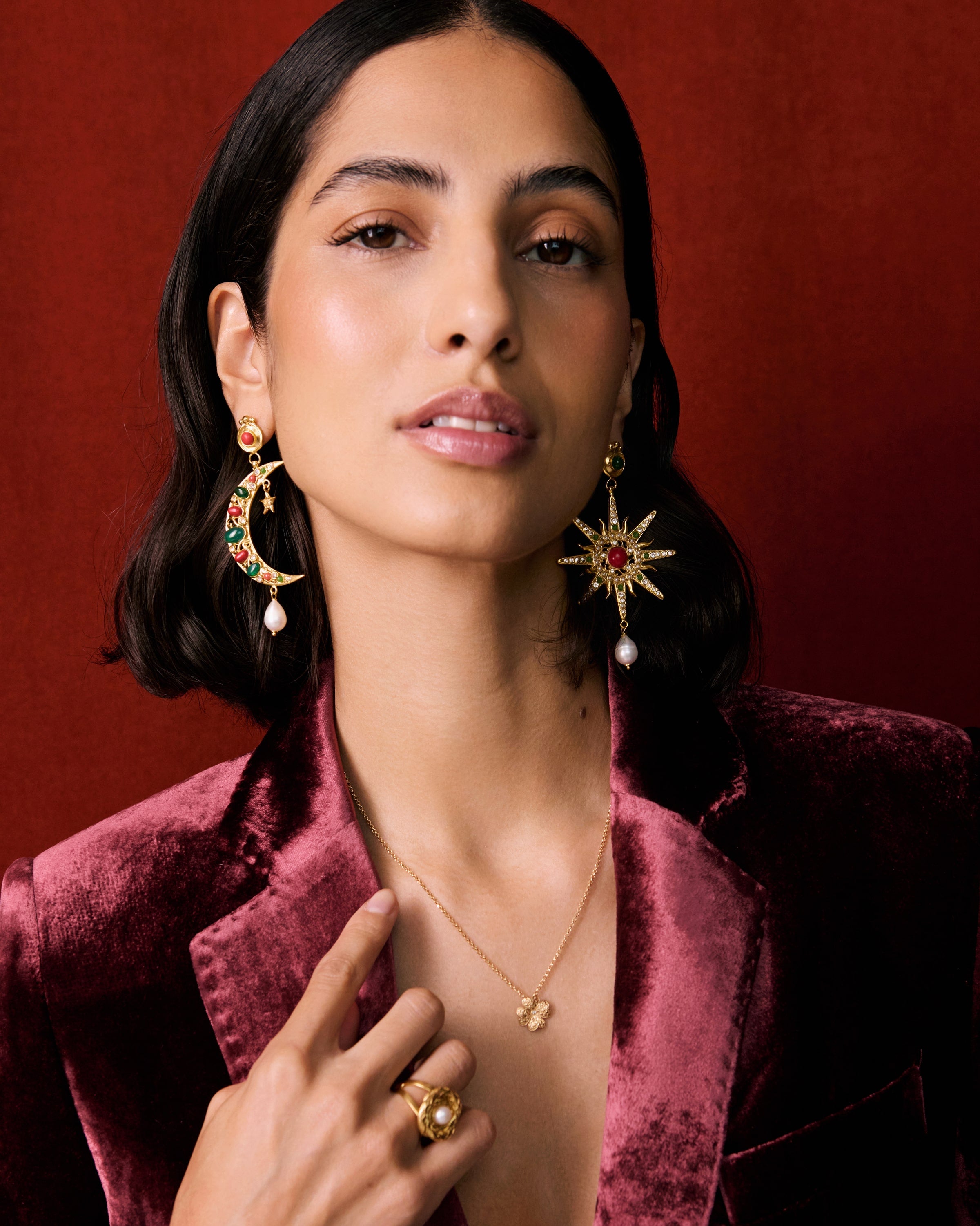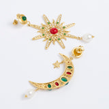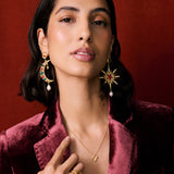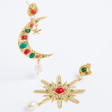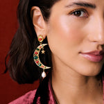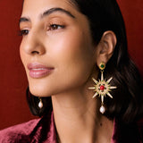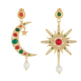 With intricate detailing, colourful green and red gemstones, mini baroque pearls all finished with hanging pearls and star, our mis-matched Aria Earrings are a work of art and will be a treasured forever.