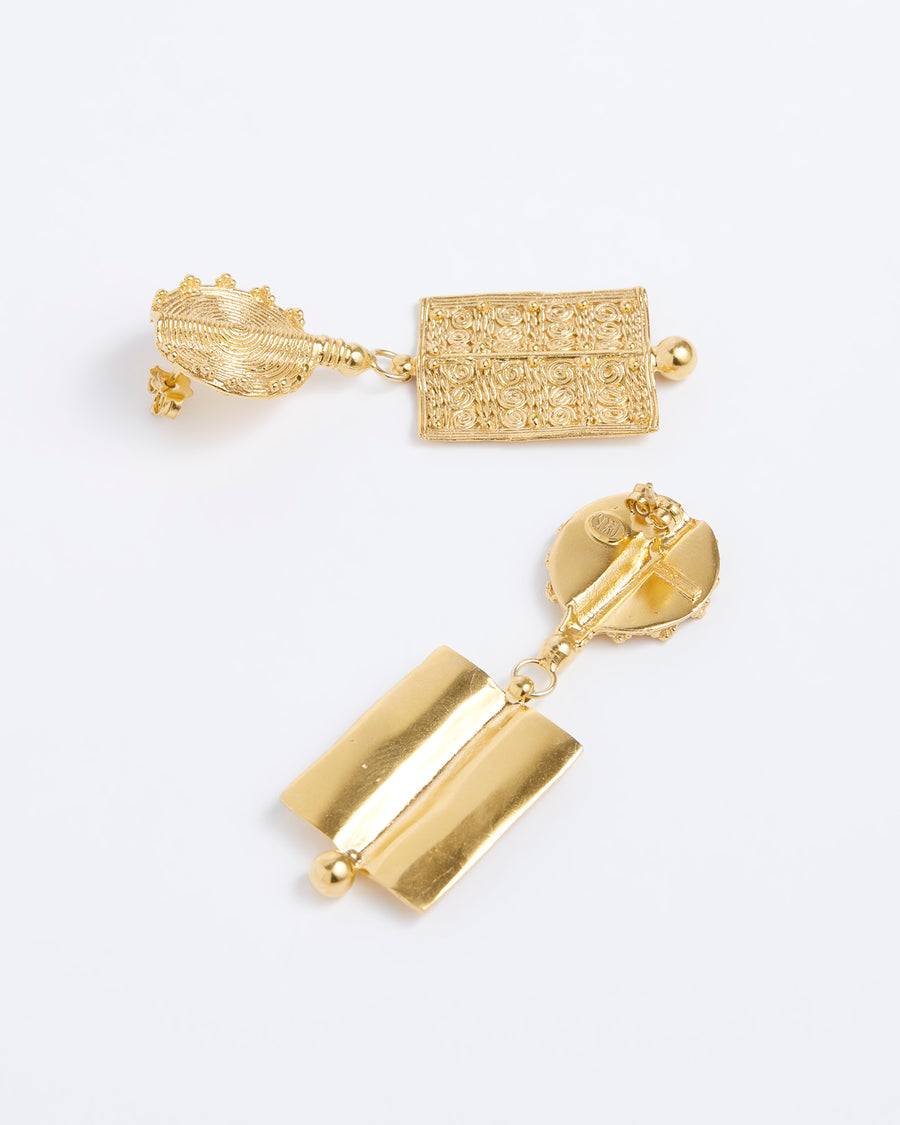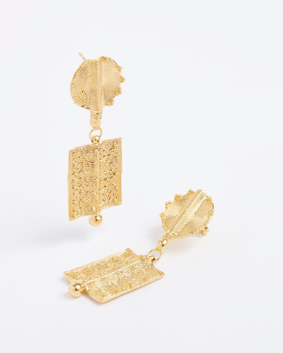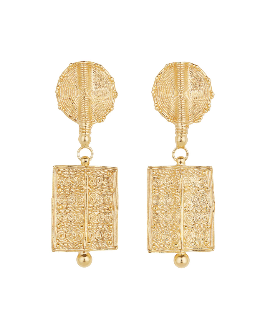 The Augusta earrings have a romantic antique feel to them with a mix of textured gold surfaces and an organic finish. Lightweight with a large top post for a comfortable fit.