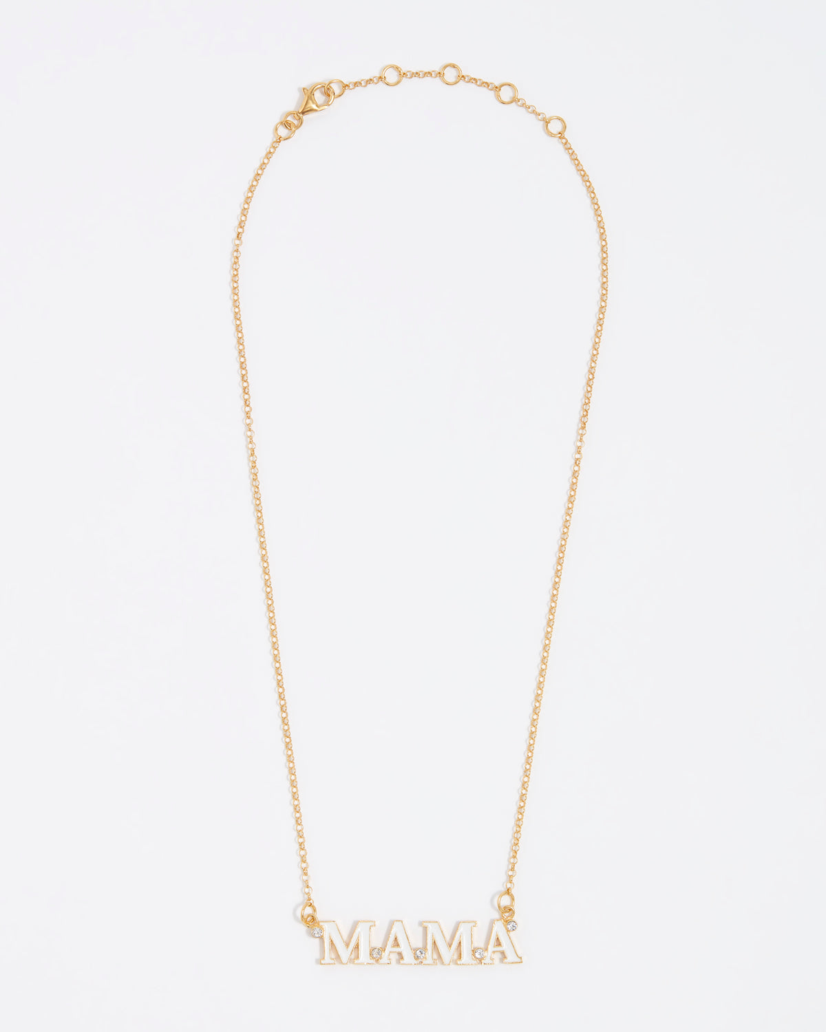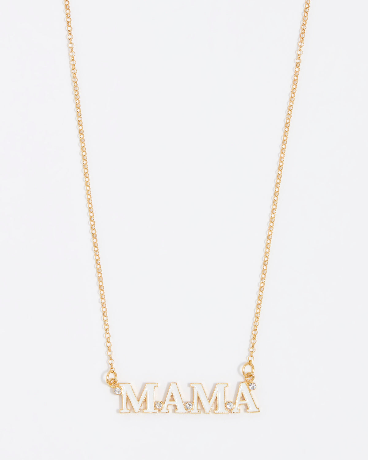 For all the best Mama's out there this necklace spells it out with white delicate hand enamelling and clear crystal details. 18k gold plated silver.