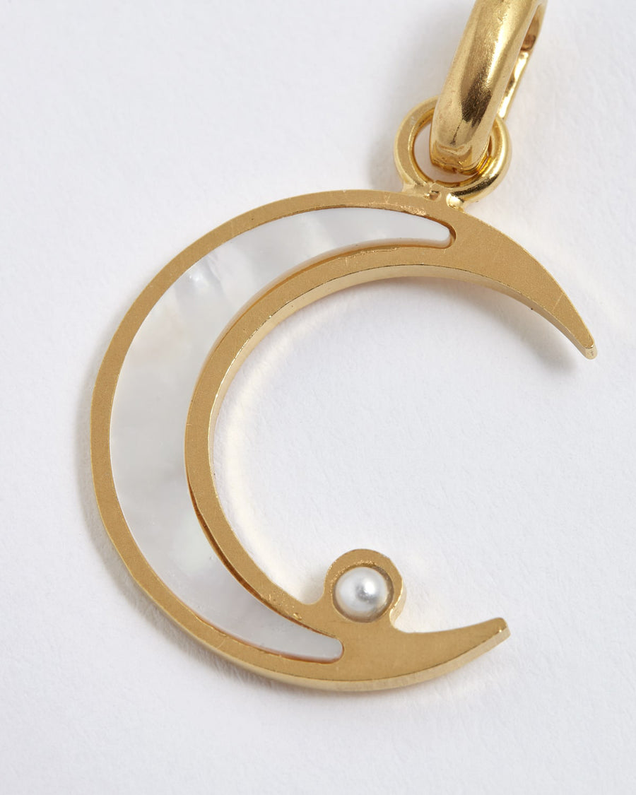 Crescent moon with mini pearl charm. Designed to easily be added to any of our Soru Charm Chain Necklaces alone or with multiple charm combinations. If you would like to check compatibility with a different chain, please contact our customer service team.