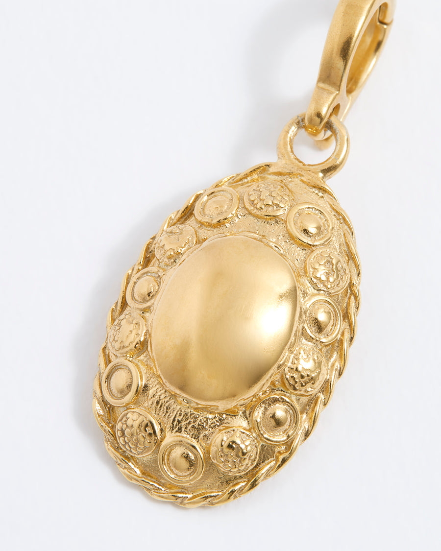 Taking elements from the Daphne Oz X Soru Baguette Bracelet Daphne has created the perfect oval necklace charm with textured detailing that goes with literally everything!