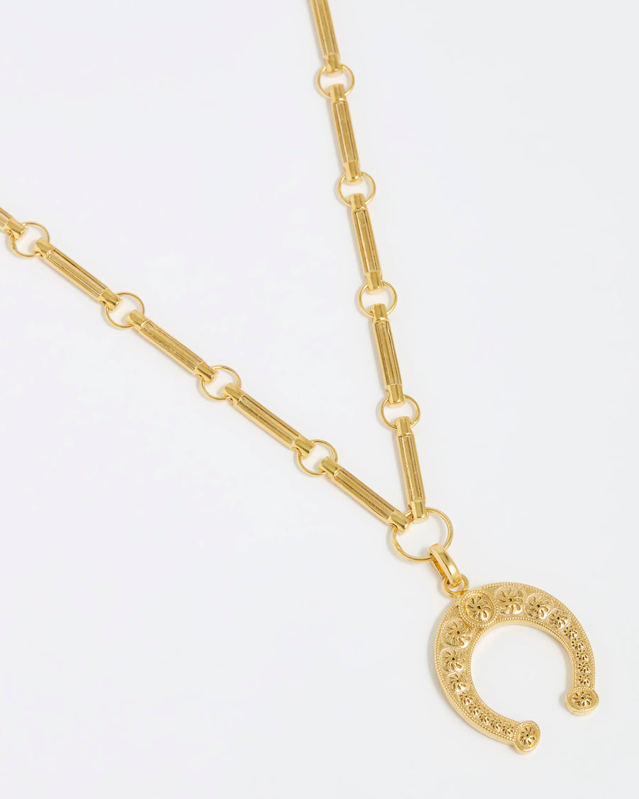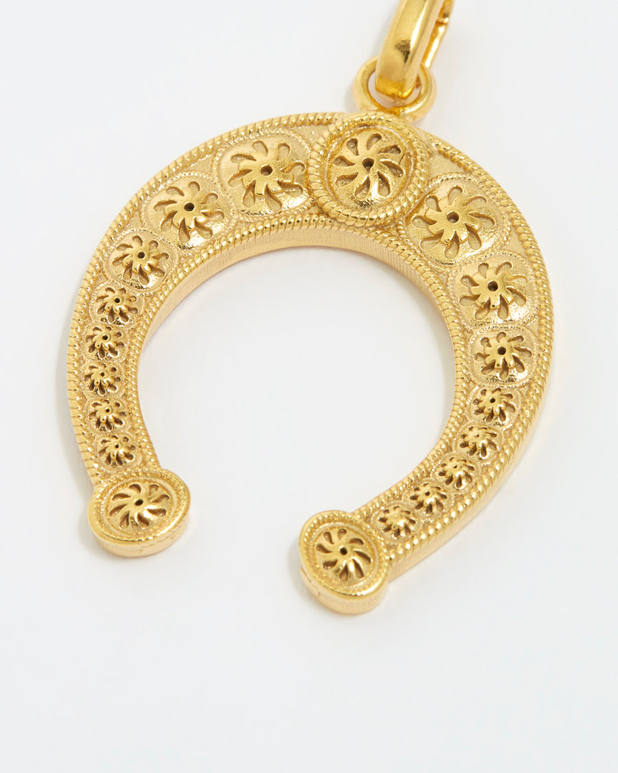 This beautifully hand crafted horseshoe charm, the emblem of good luck, has an intricate etching and cutwork surface design for a vintage style finish.