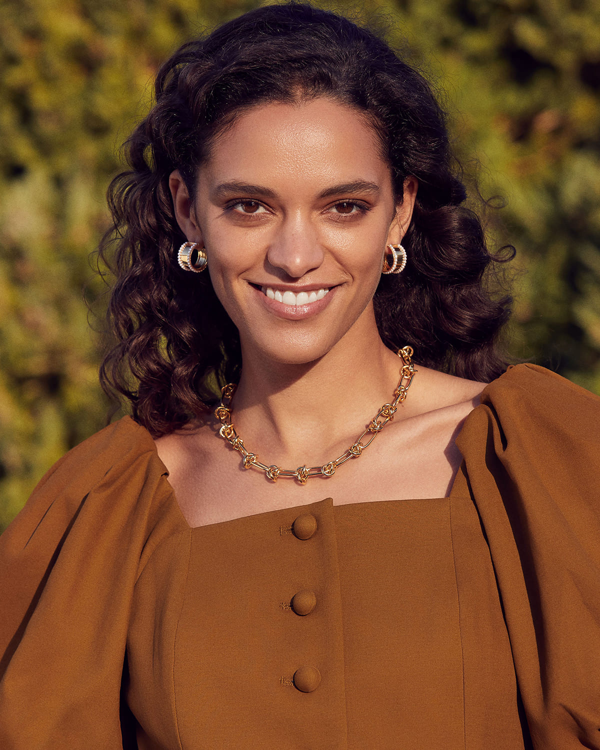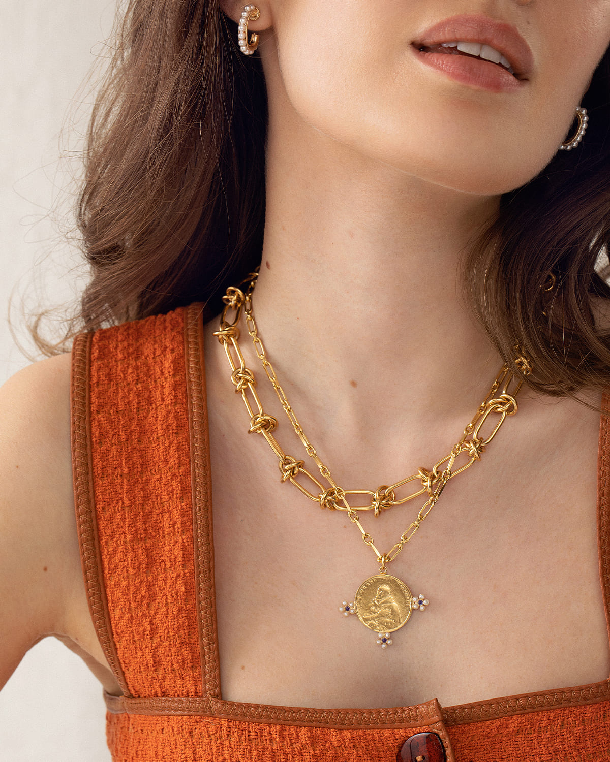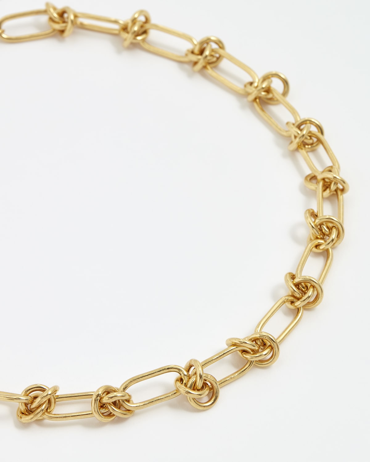 A chunky gold chain is a perfect jewellery staple. This statement chain features a knotted design, making it a unique stand-out piece. Designed to be worn at the chest, perfect for layering with other necklaces as well as a standalone piece.