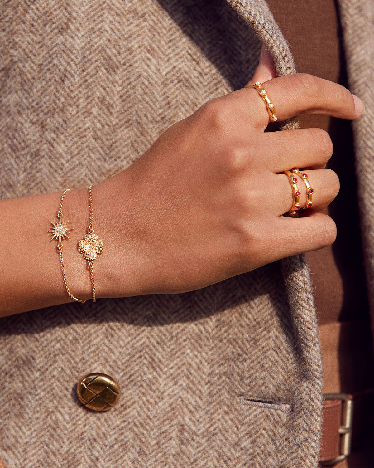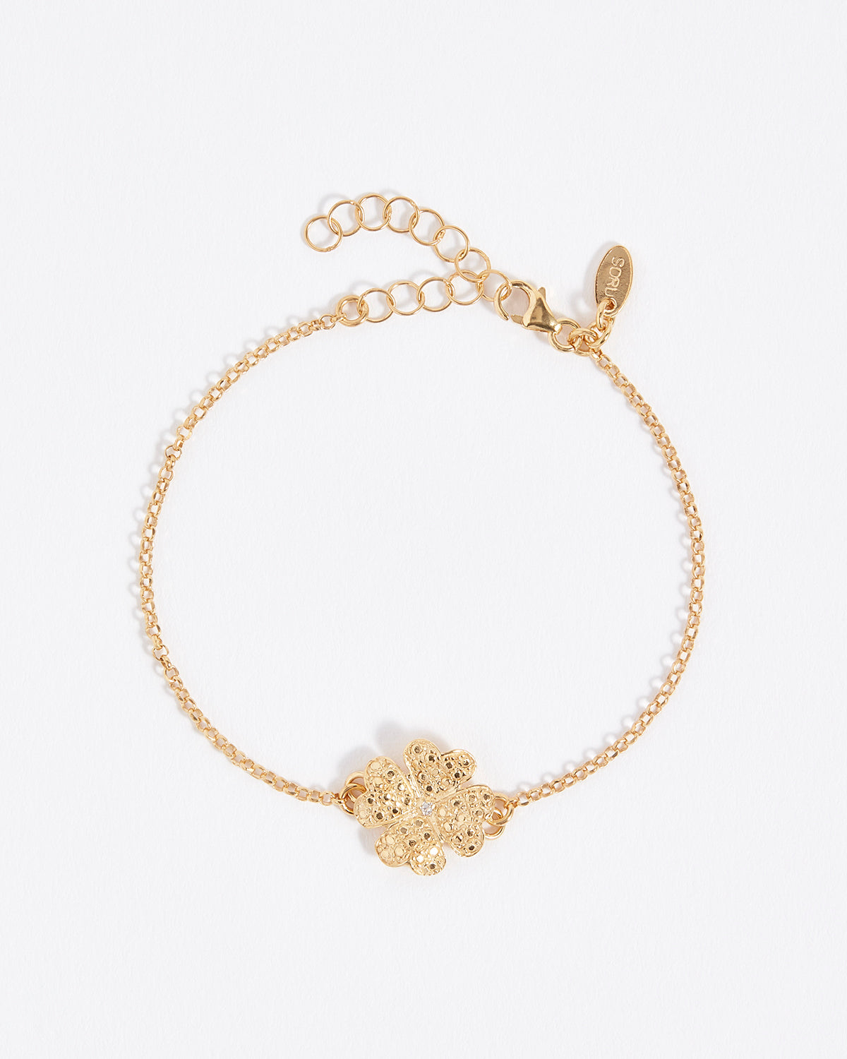 Soru Jewellery solid gold and diamond lucky clover charm bracelet