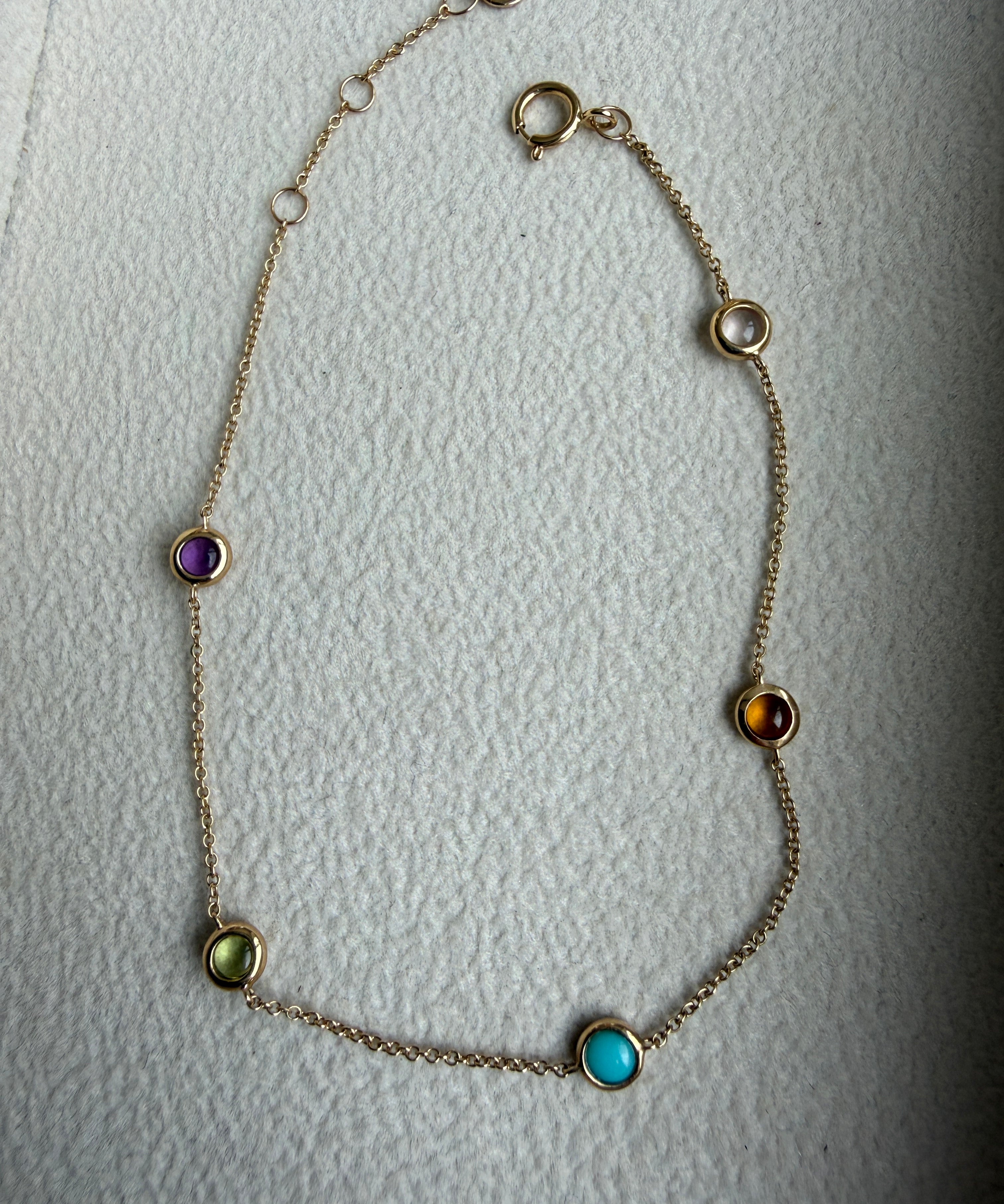 SAMPLE SALE 14k Solid Gold Multi Coloured Gemstone Station Bracelet