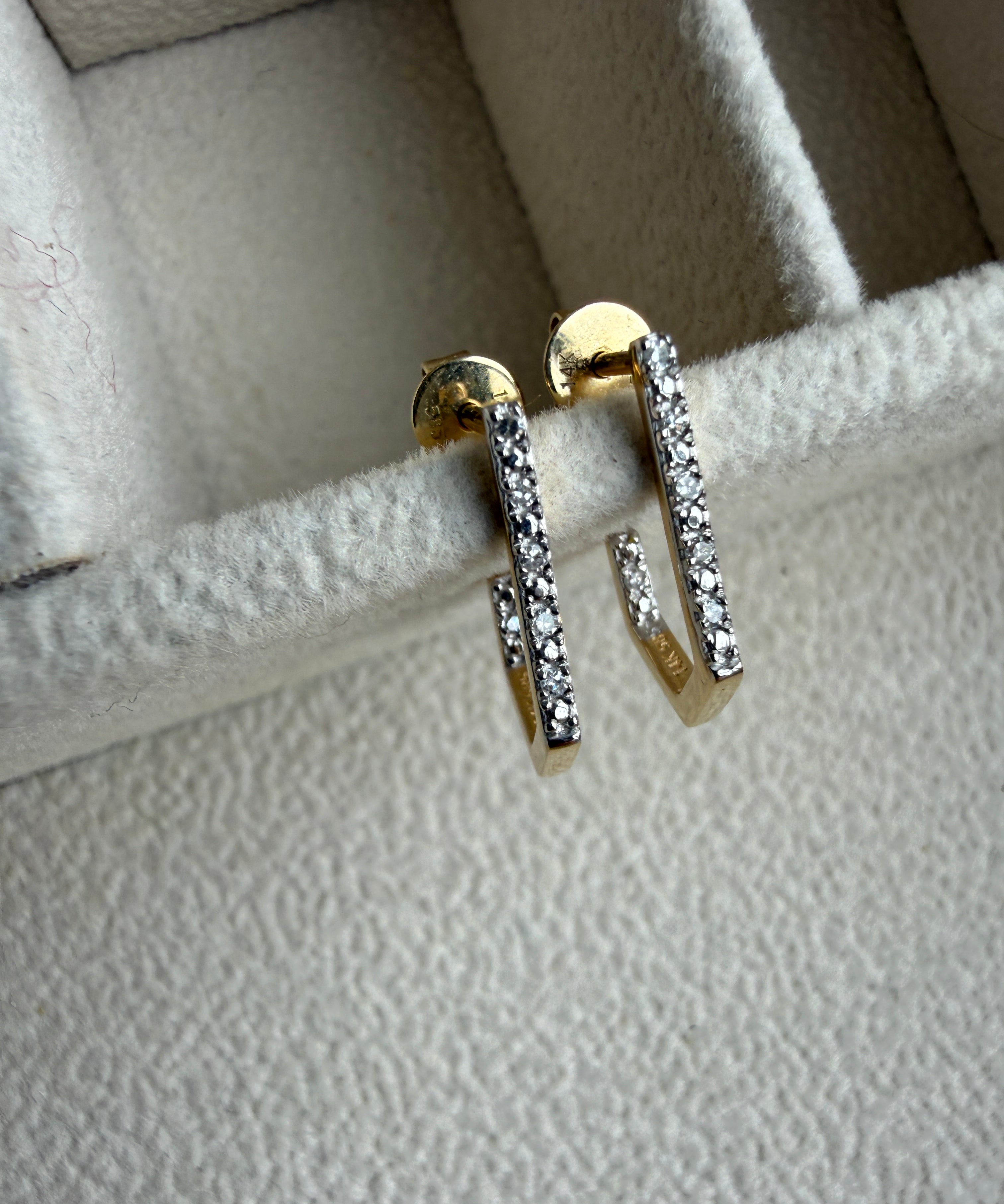 SAMPLE SALE 14k Solid Gold Diamond Geo Huggie Hoop Earrings