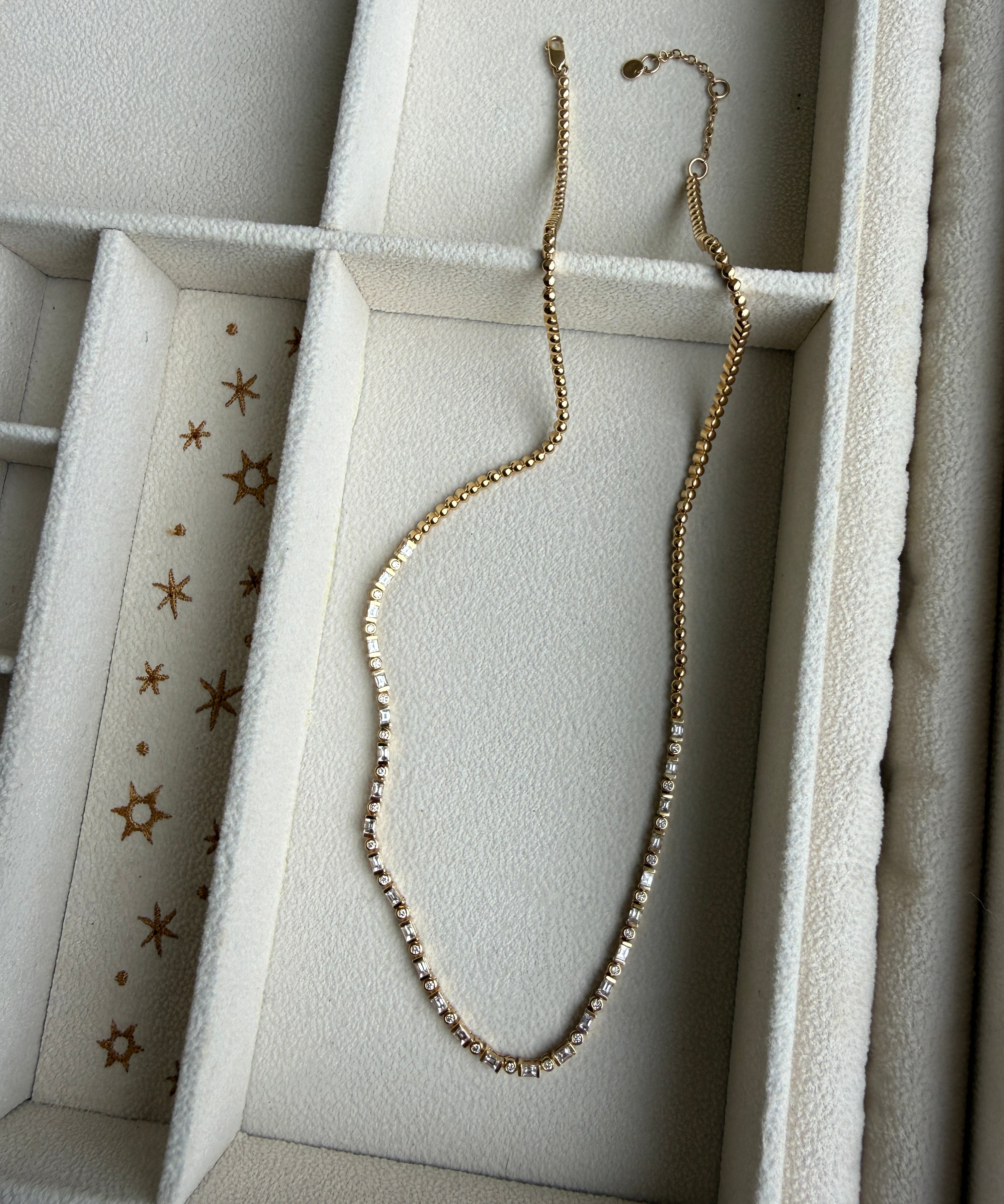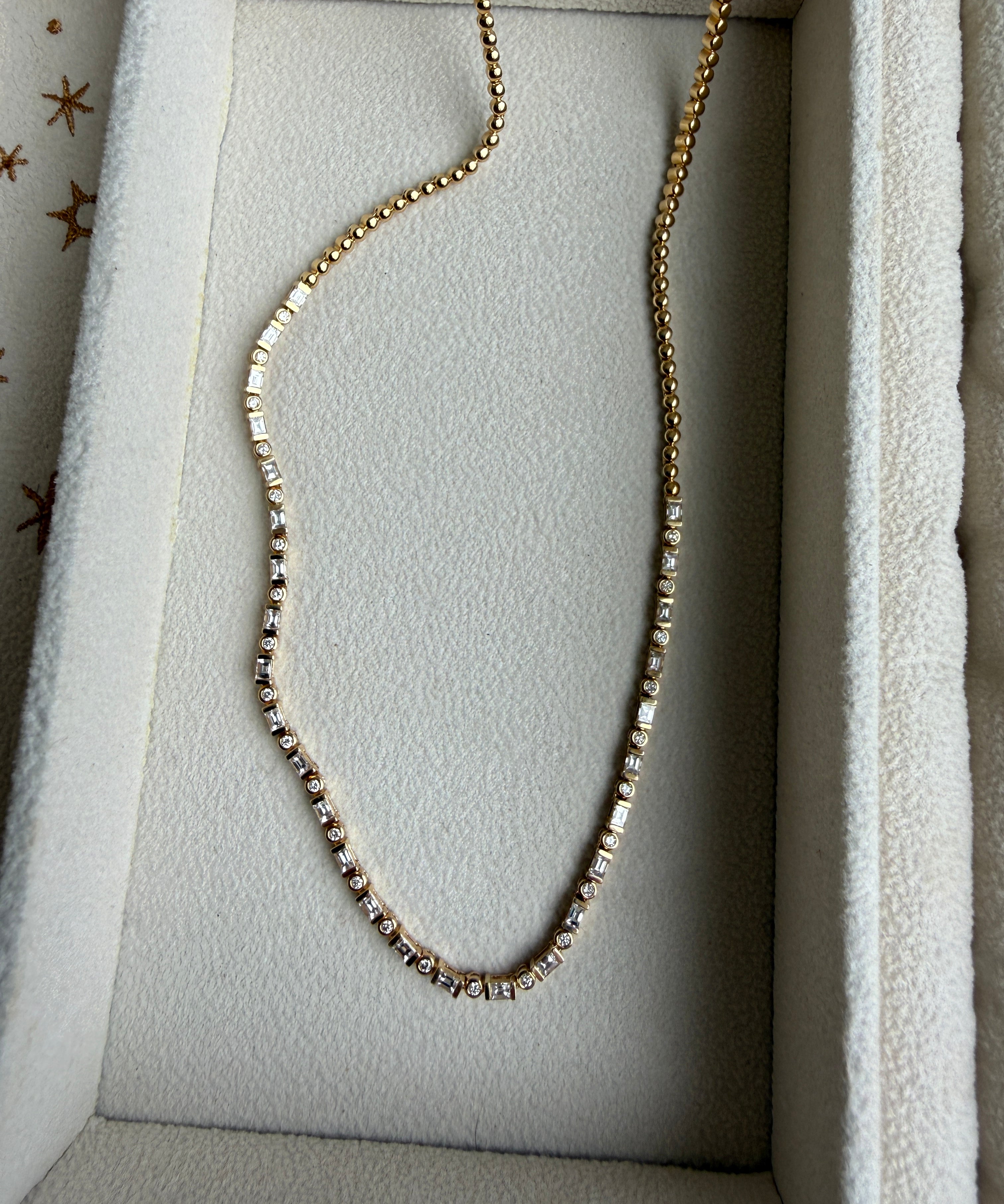 SAMPLE SALE 14k Solid Gold Natural Diamond Tennis Necklace