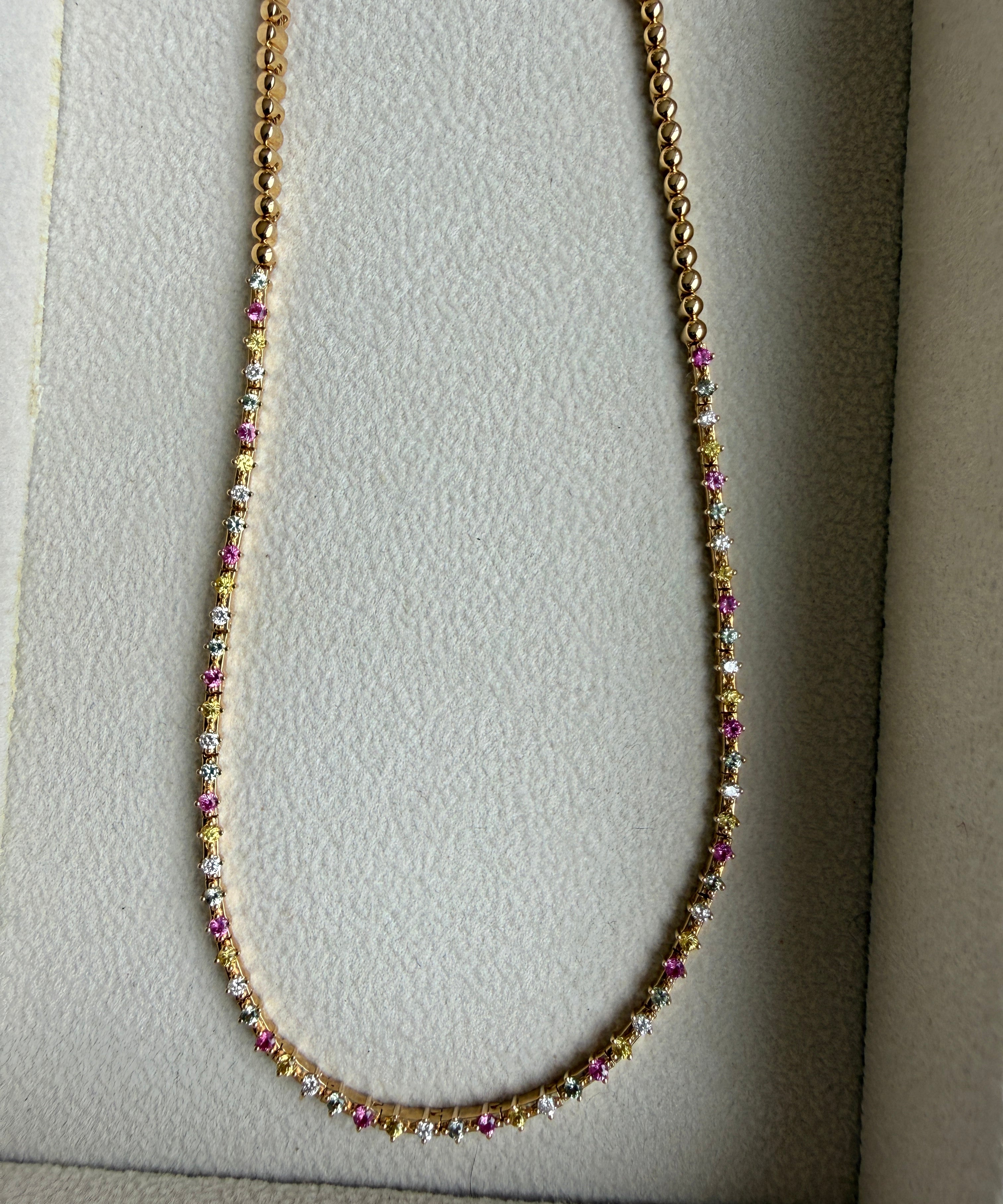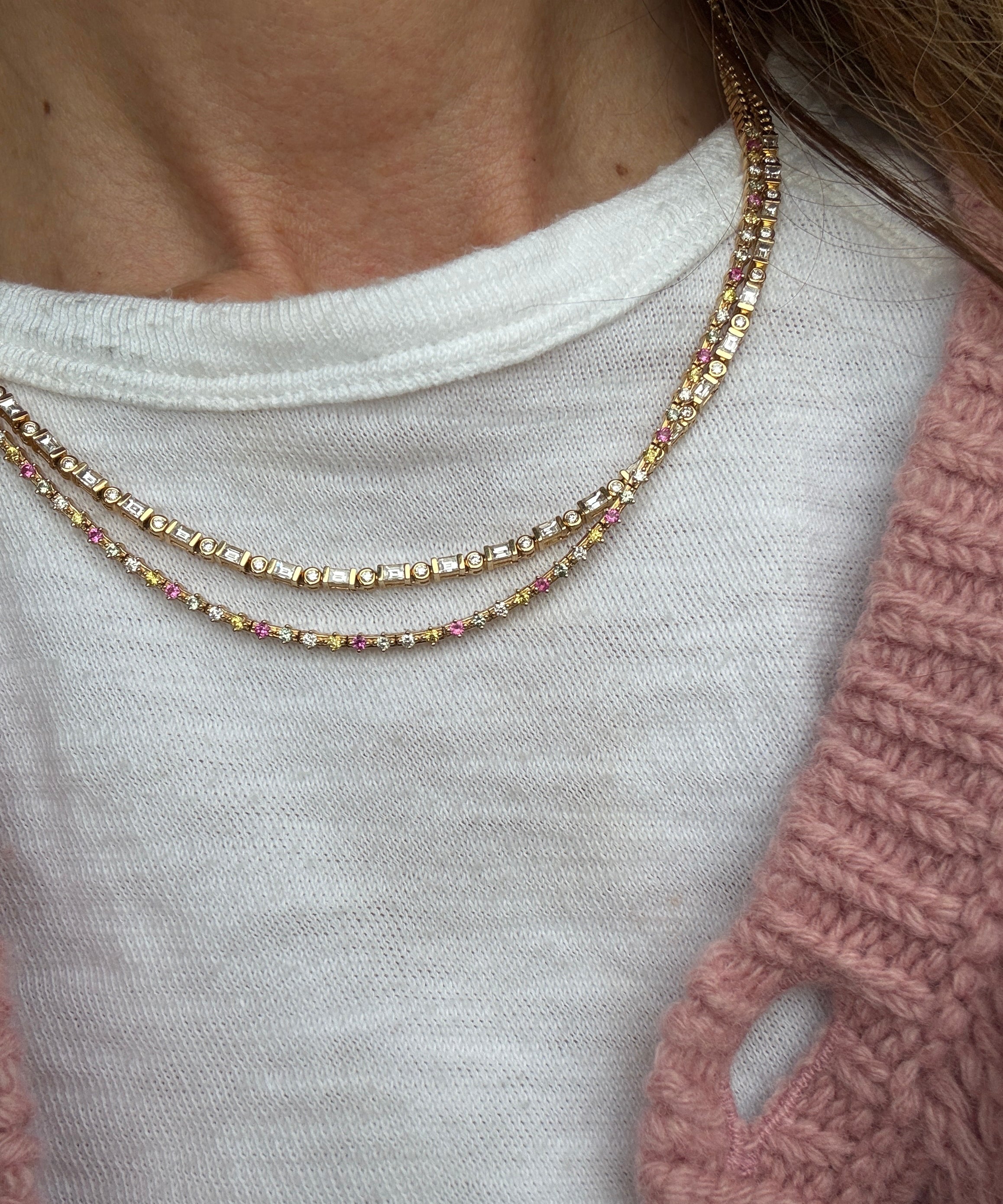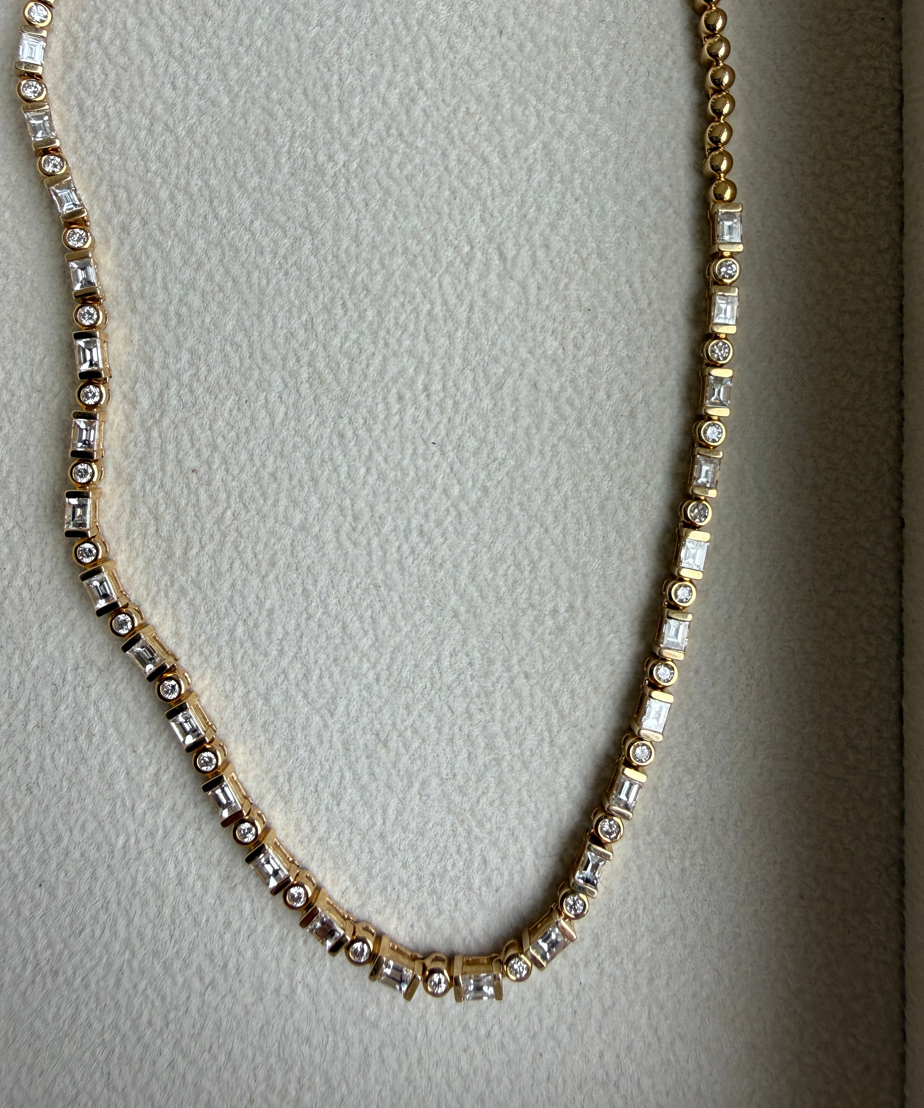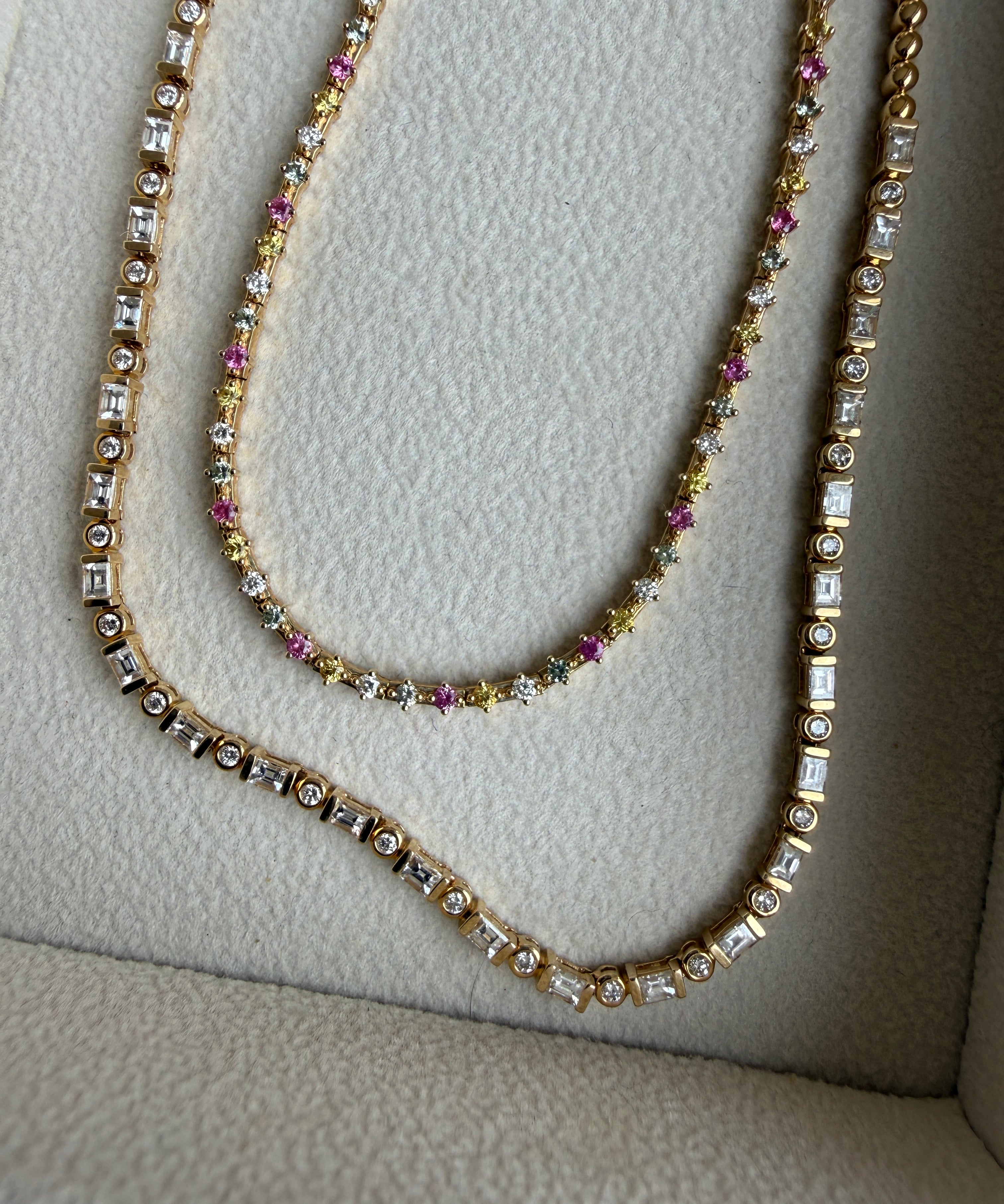 SAMPLE SALE 14k Solid Gold Sapphire & Diamond Tennis Necklace