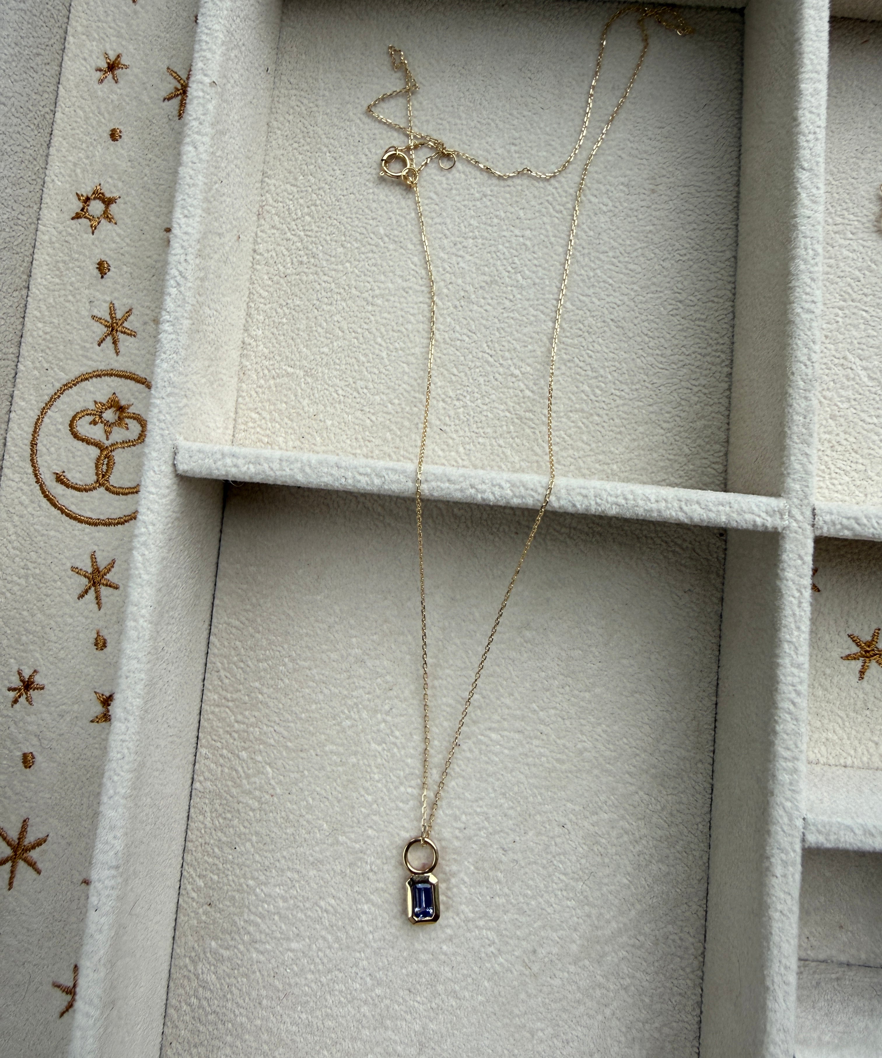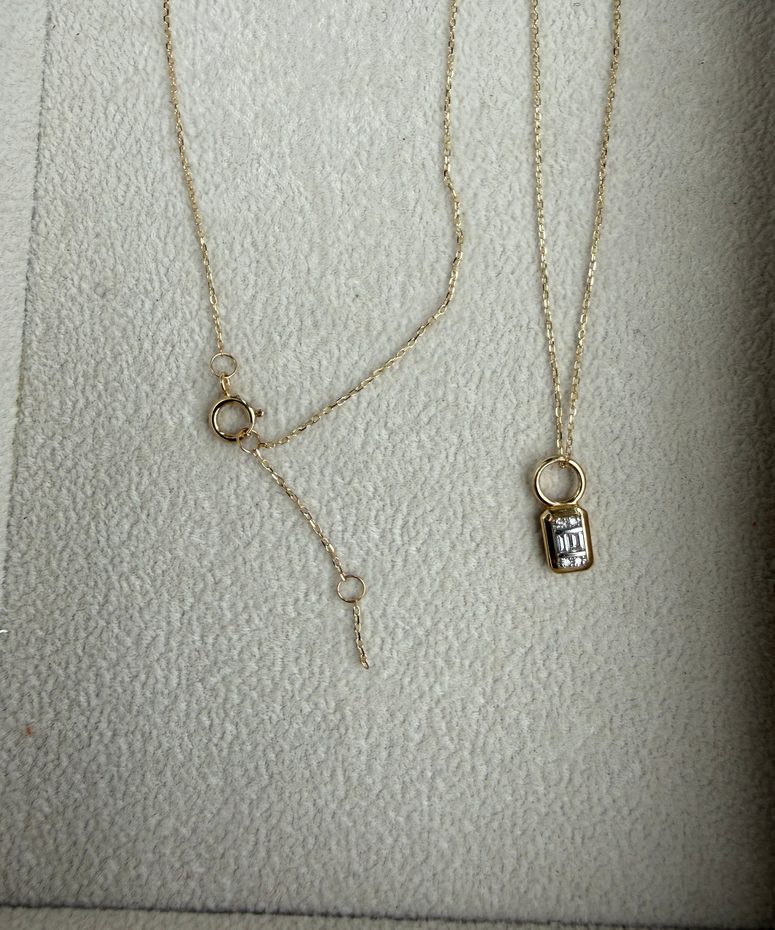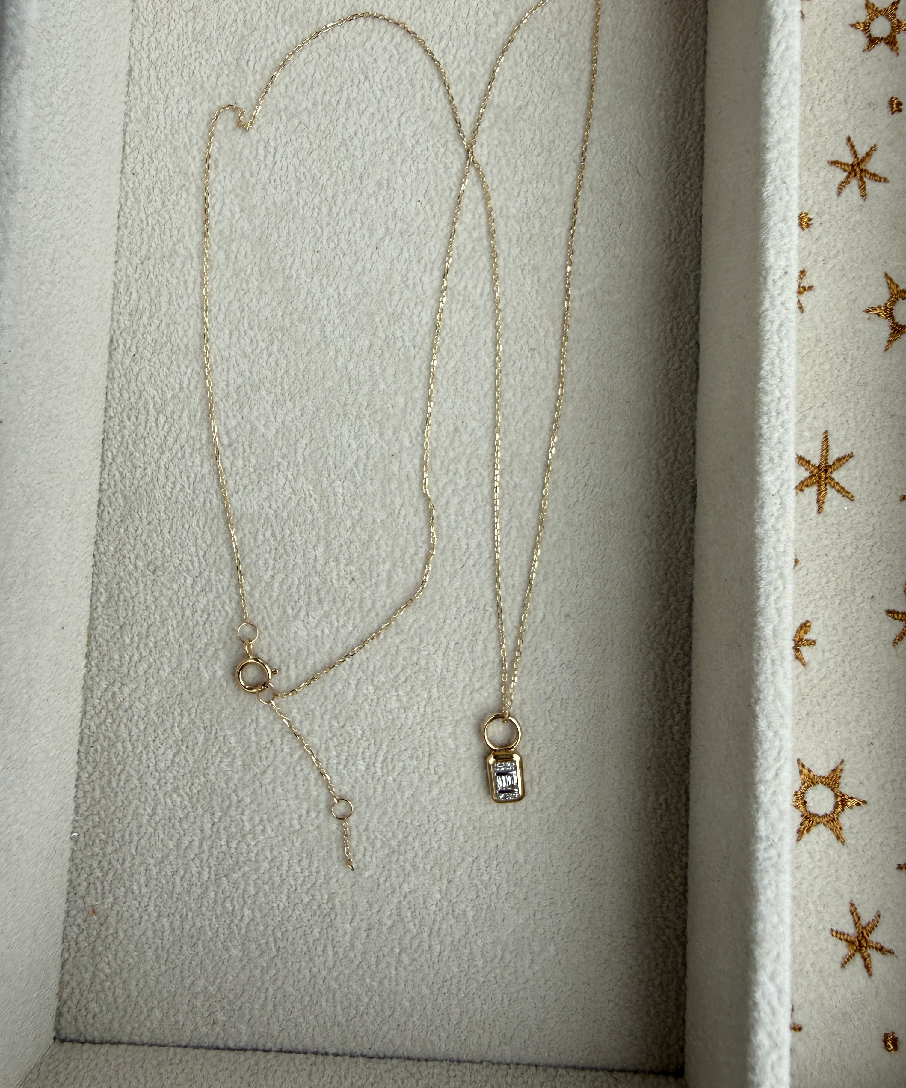 SAMPLE SALE 14k Solid Gold Diamond Baguette Pendant Necklace