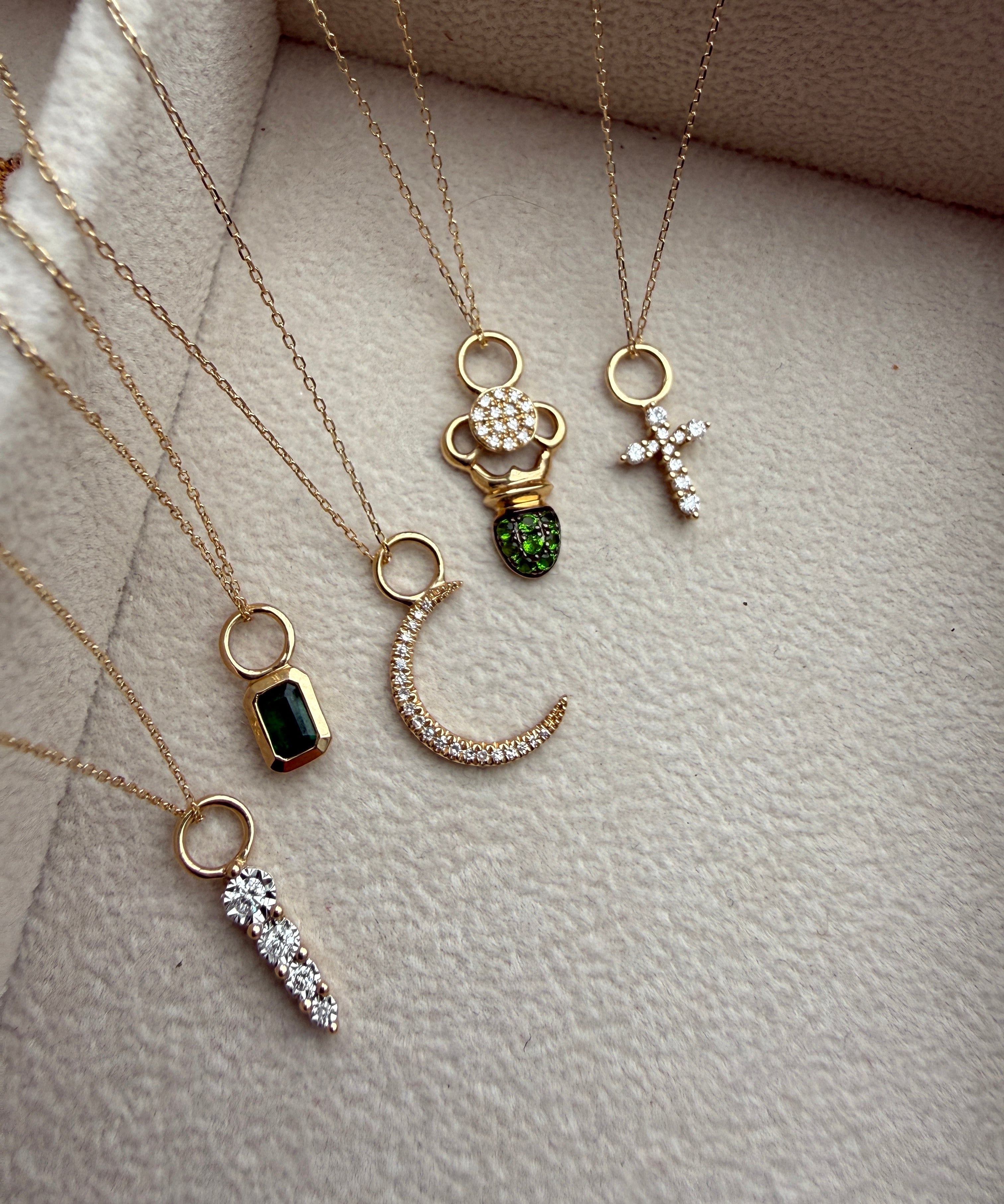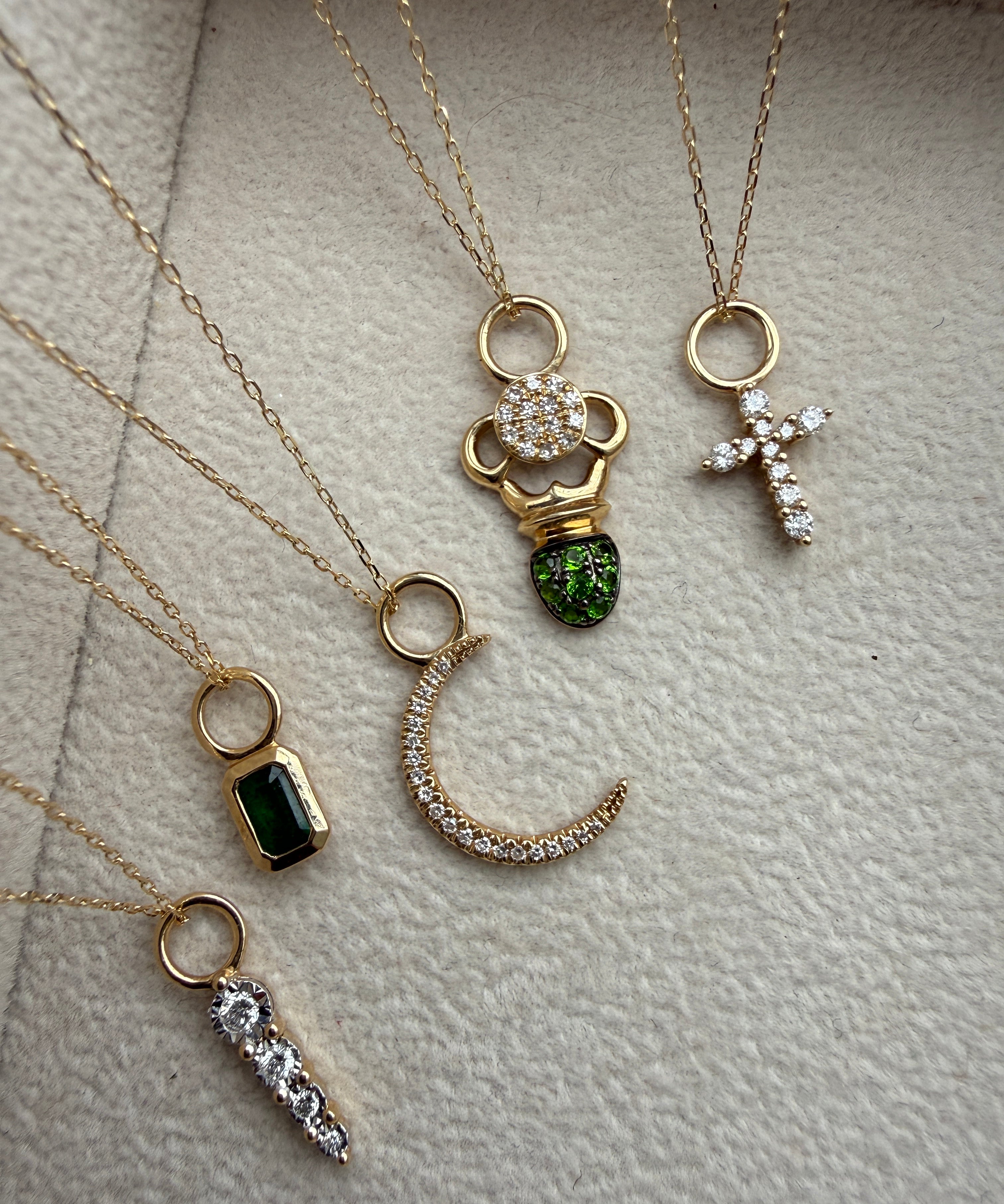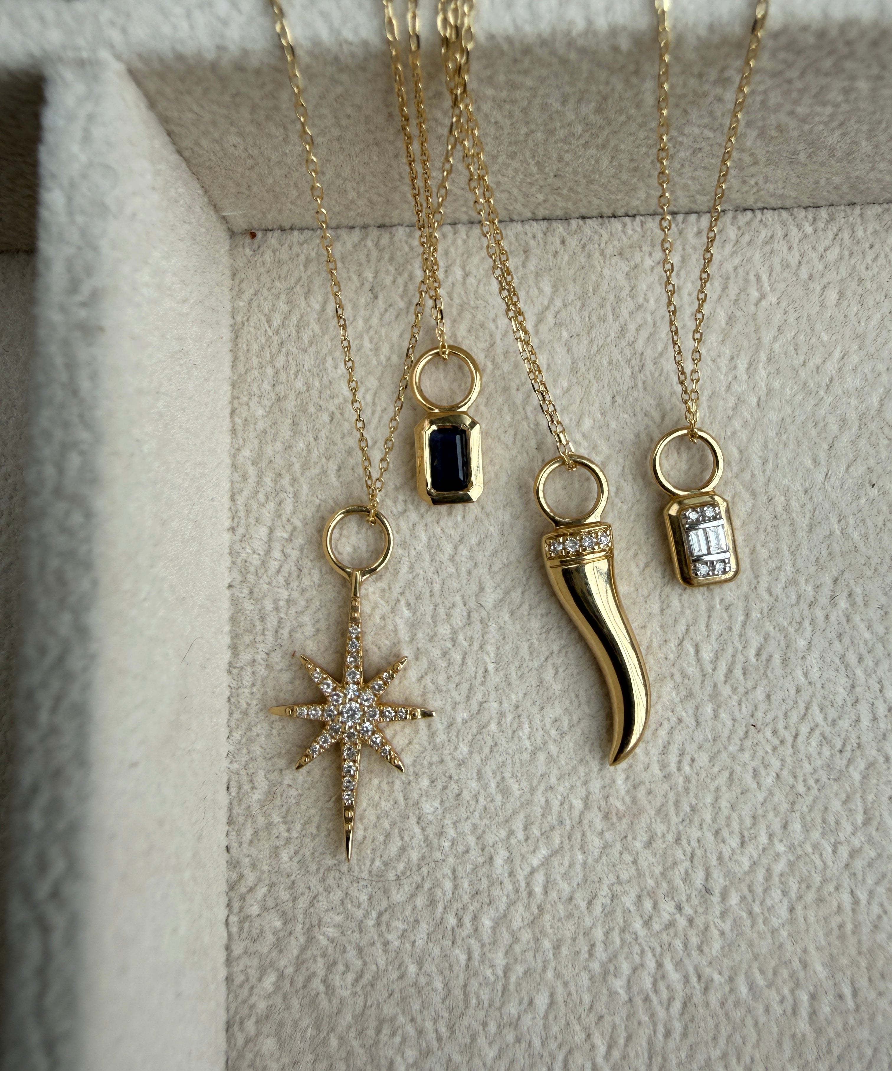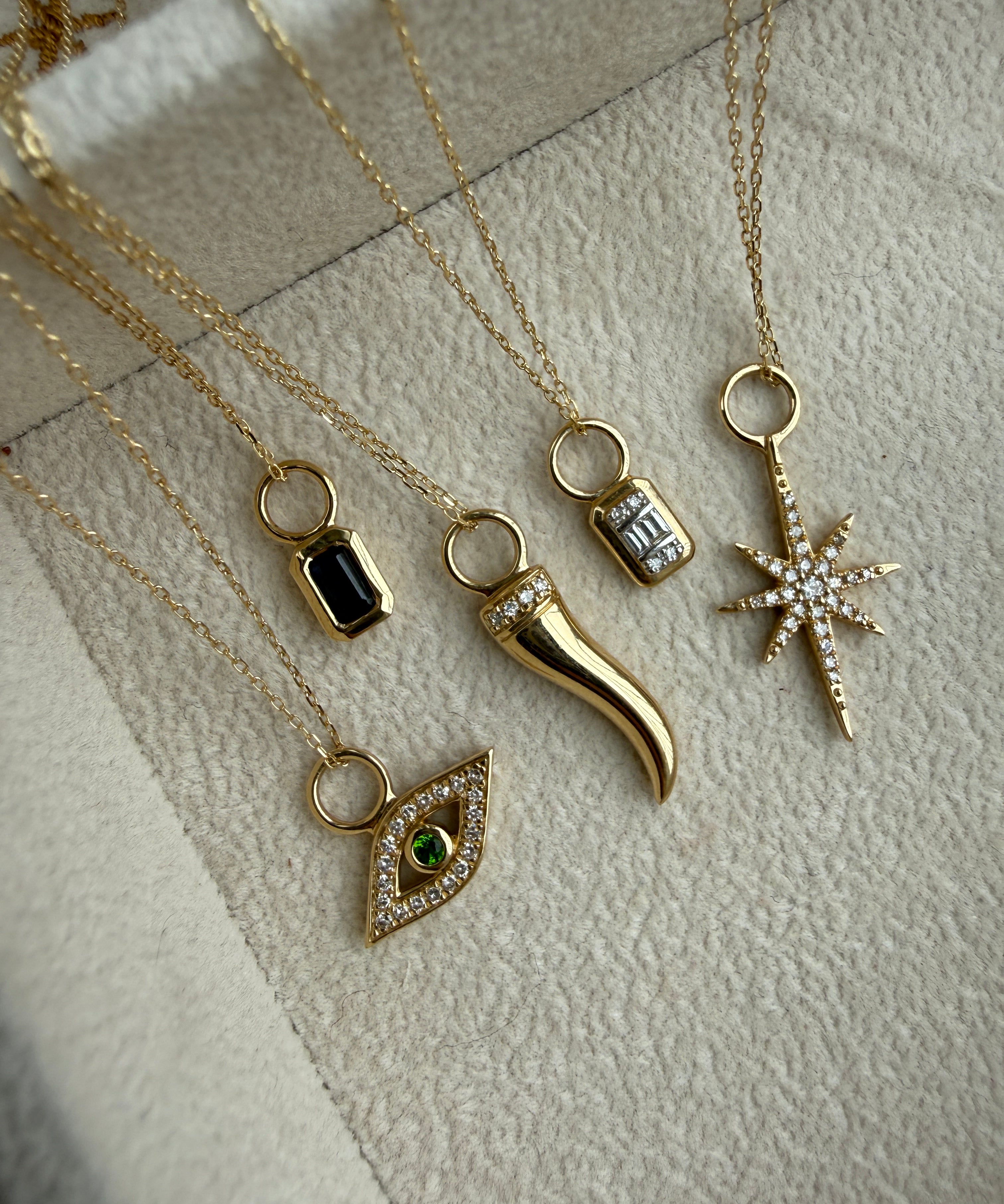 SAMPLE SALE 14k Solid Gold Diamond Cornicello Charm Pendant Necklace