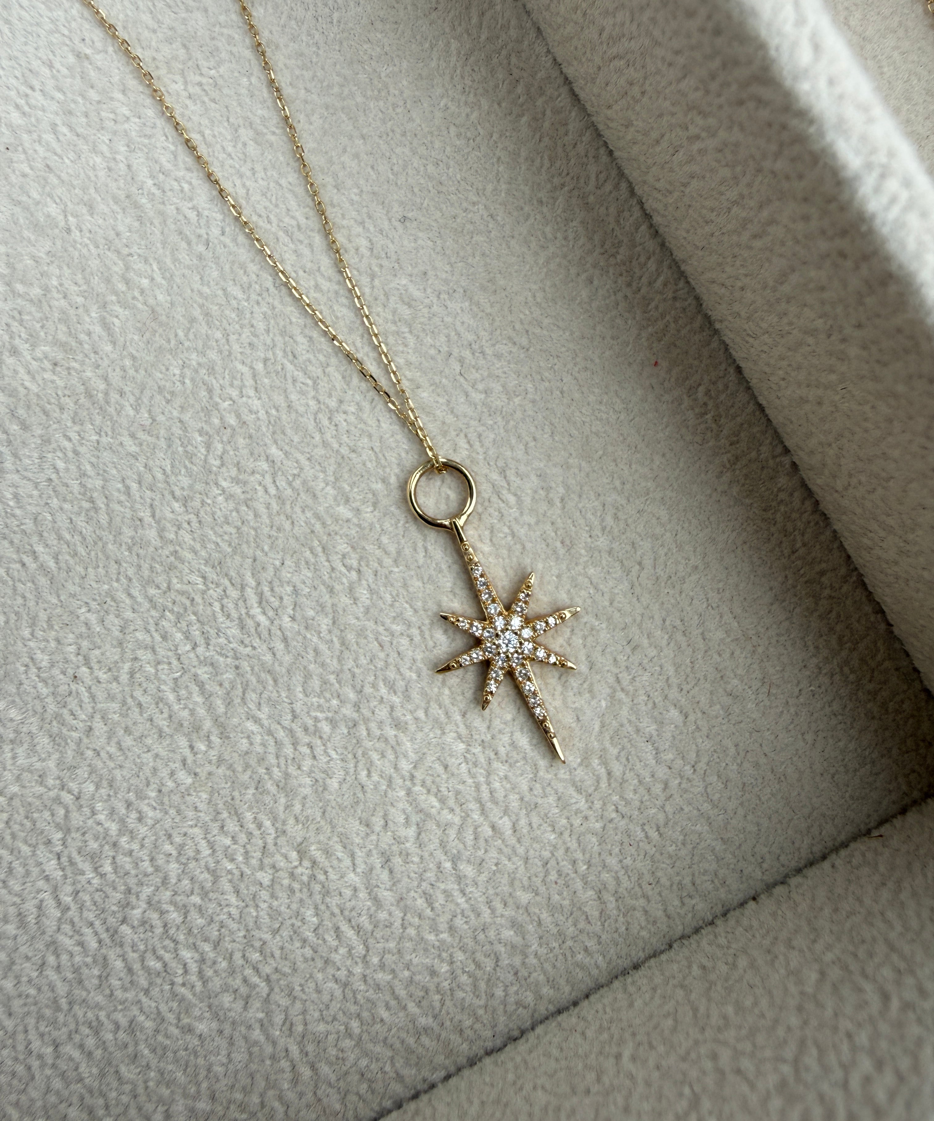 SAMPLE SALE 14k Solid Gold Diamond Star Pendant Necklace