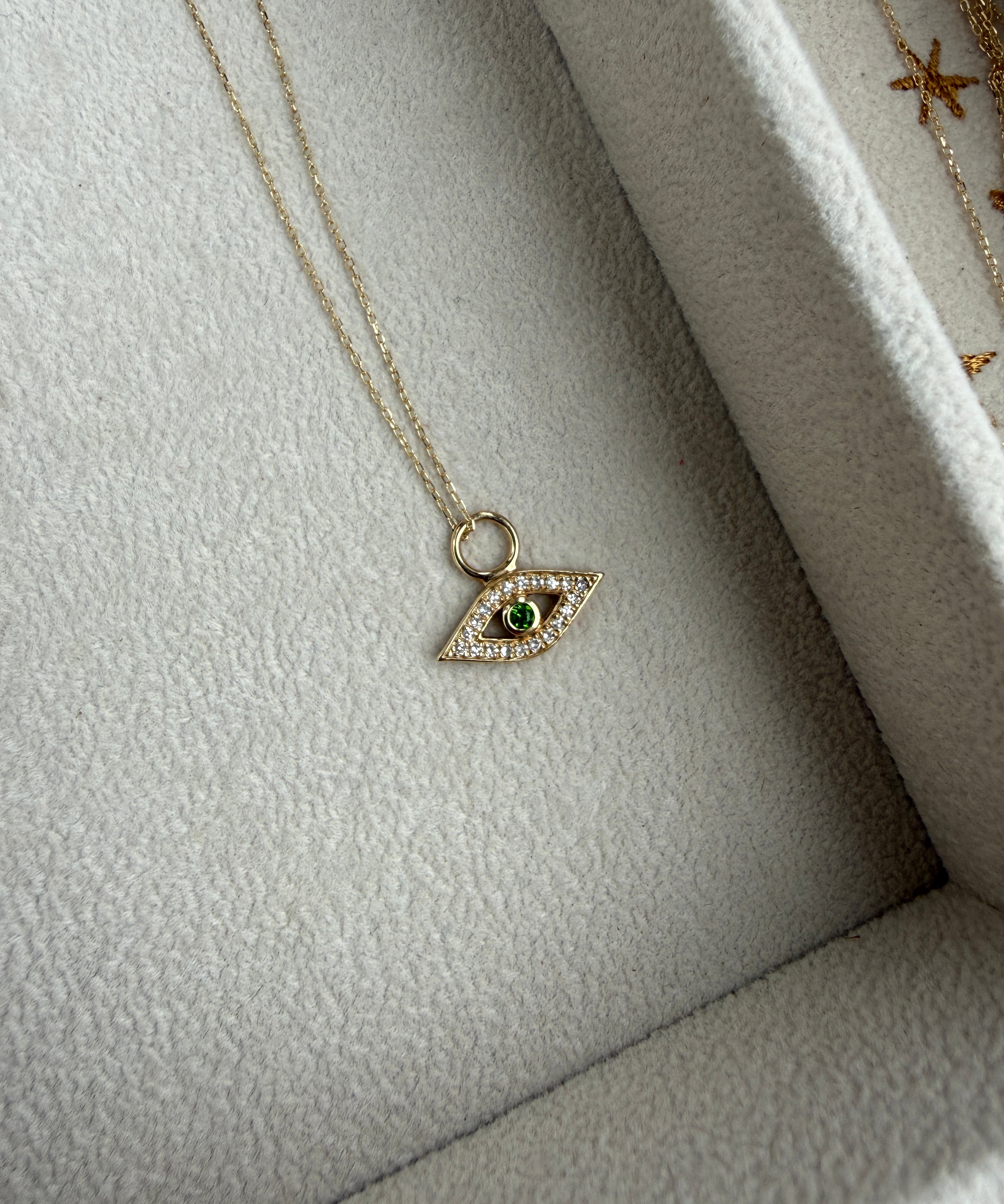 SAMPLE SALE 14k Solid Gold Diamond Evil Eye Pendant Necklace
