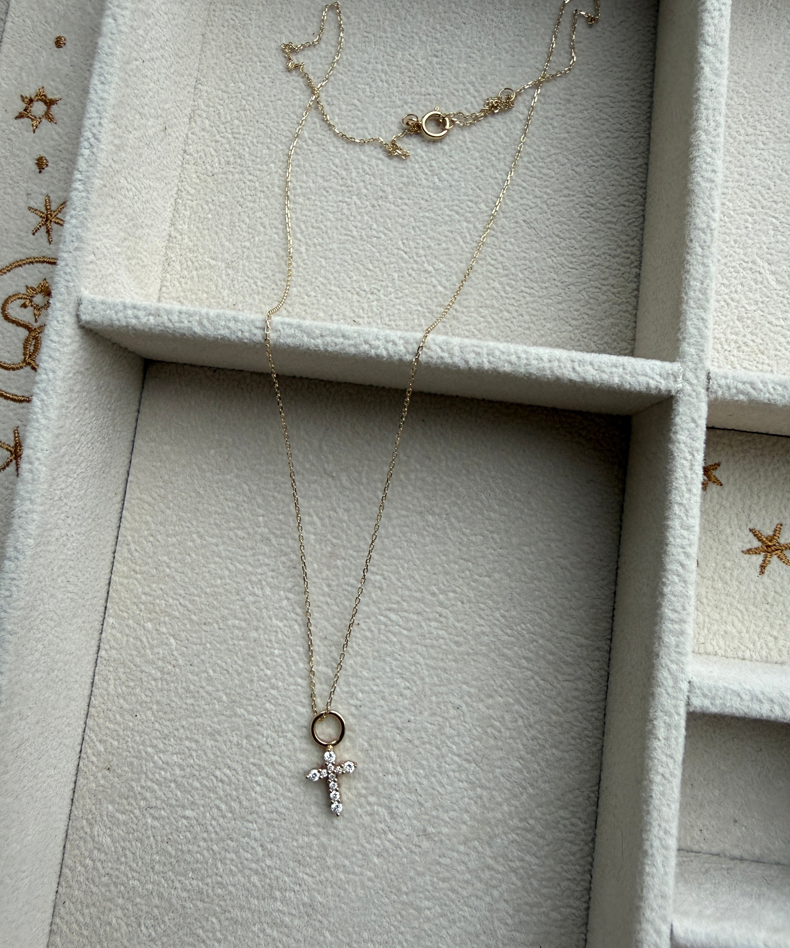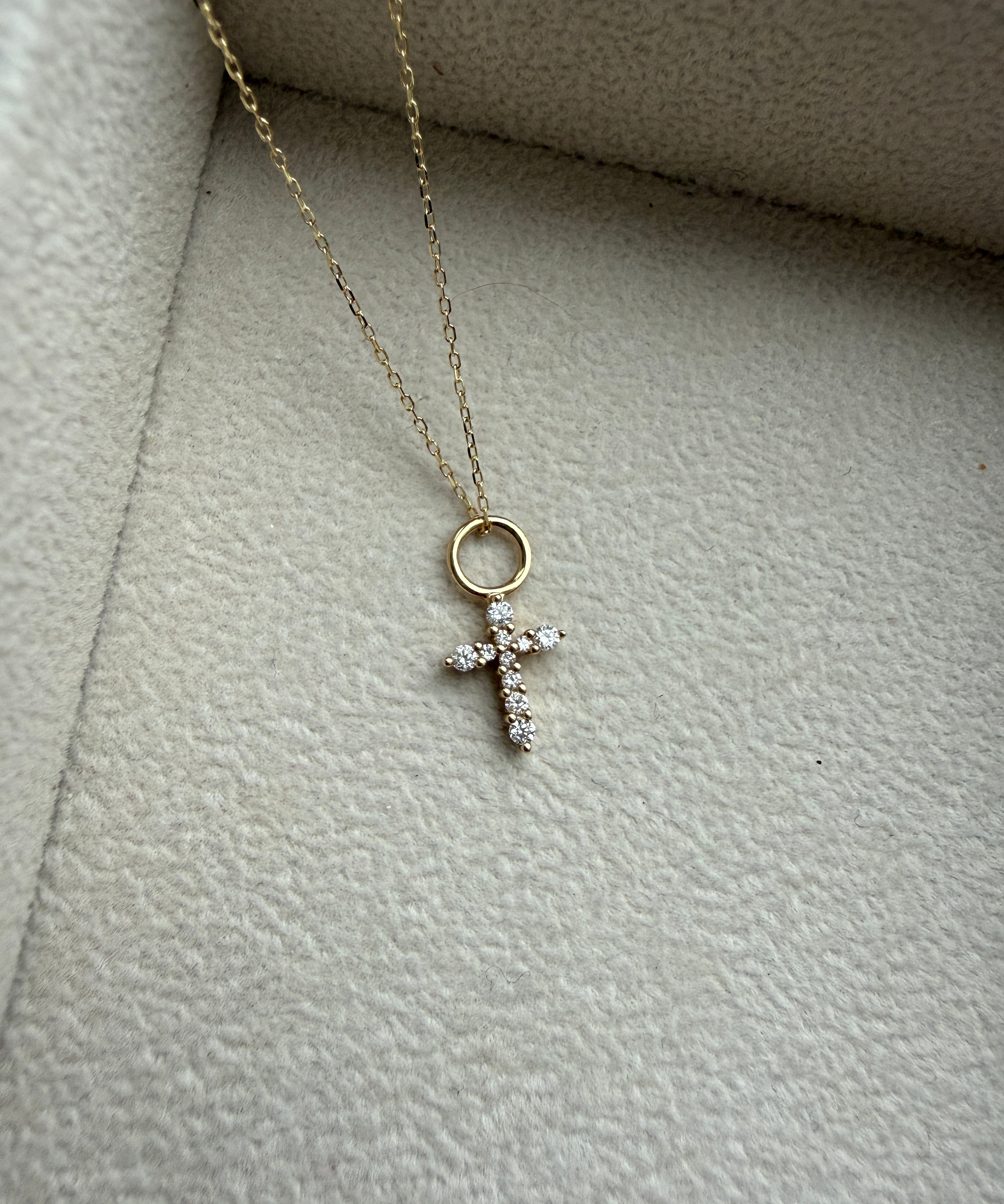 SAMPLE SALE 14k Solid Gold Diamond Cross Pendant Necklace