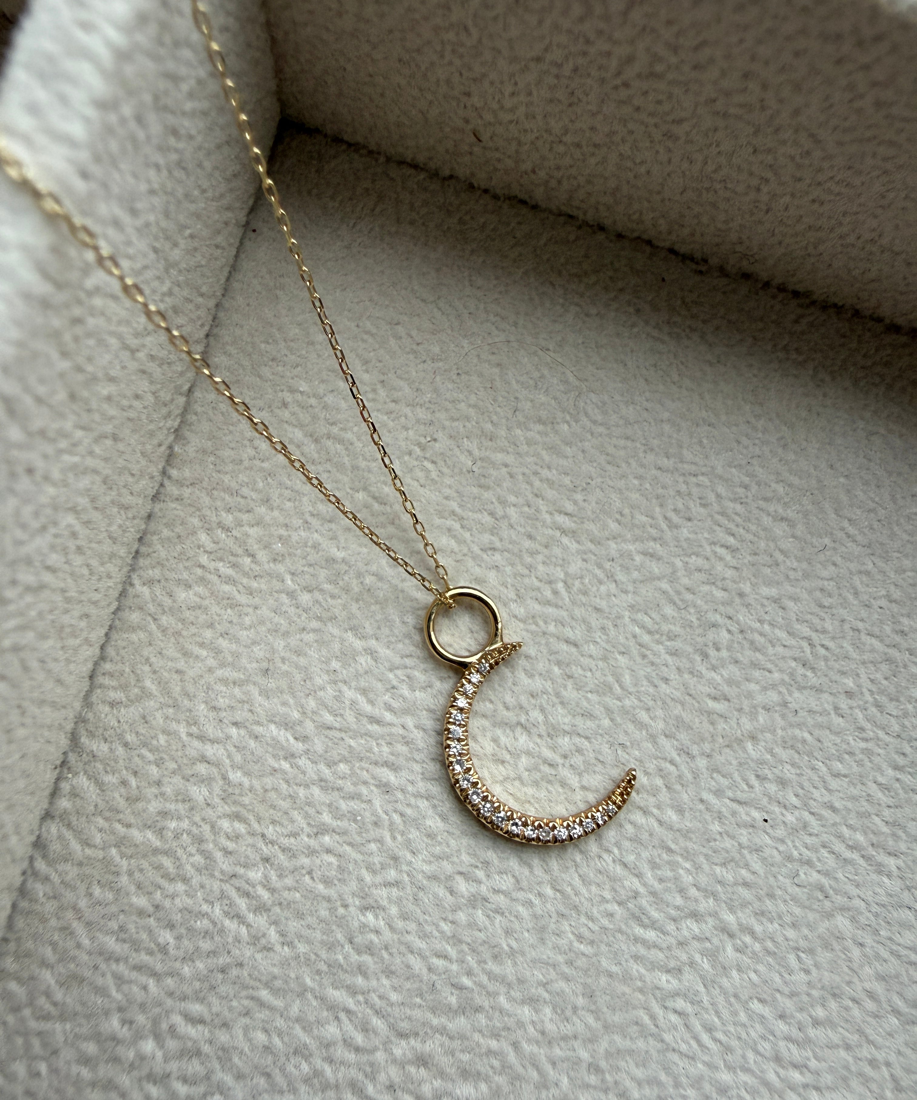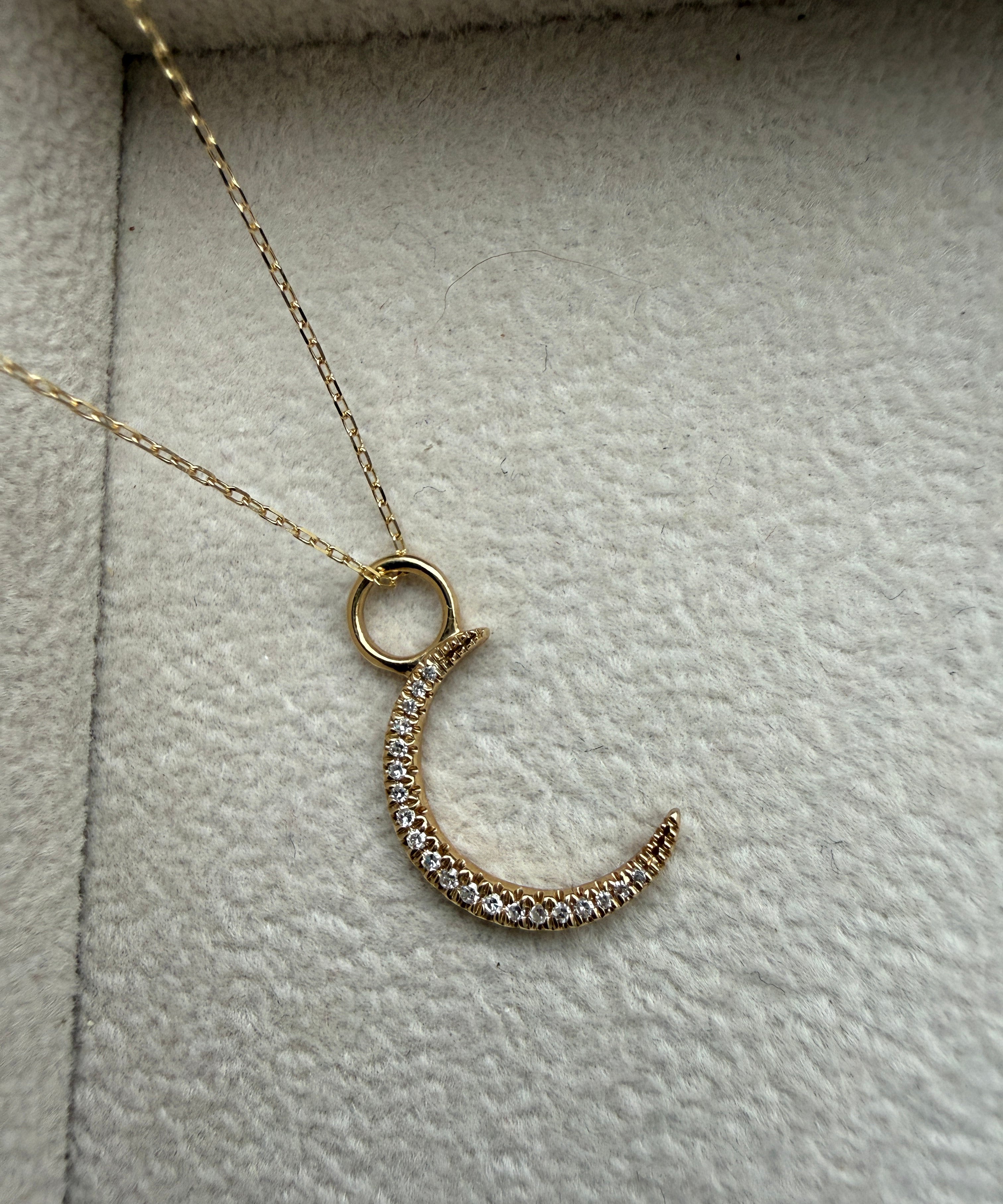 SAMPLE SALE 14k Solid Gold Diamond Moon Pendant Necklace