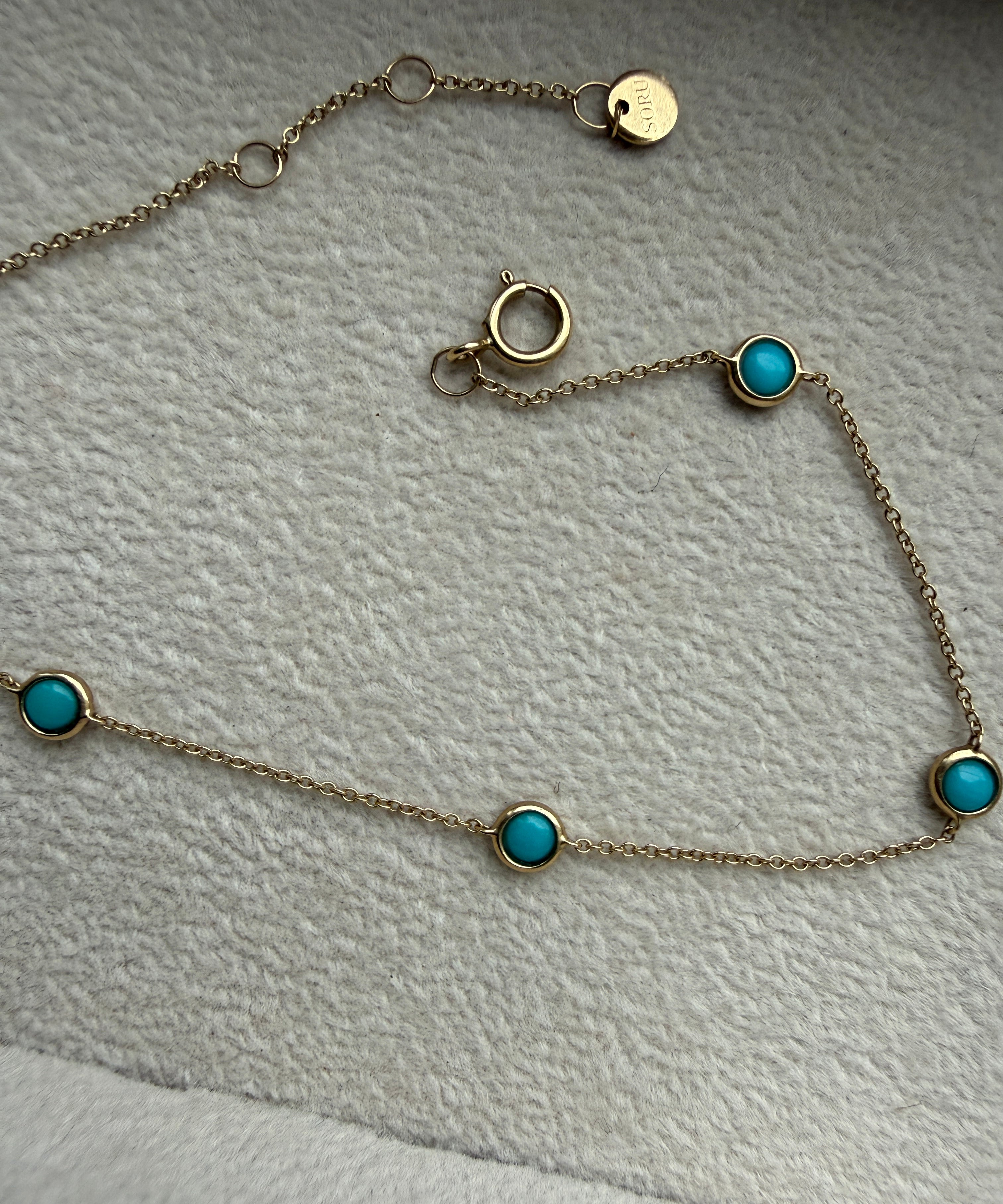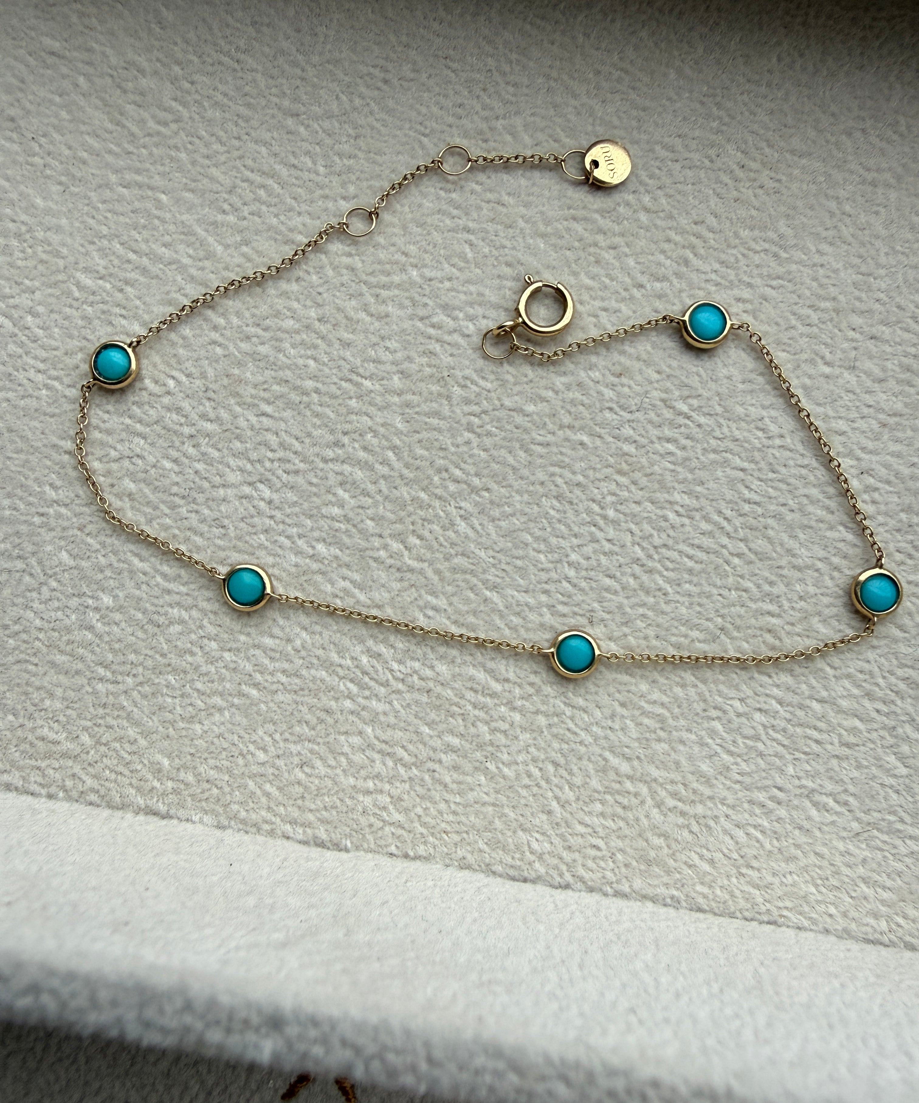 SAMPLE SALE 14k Solid Gold Turquoise Station Bracelet