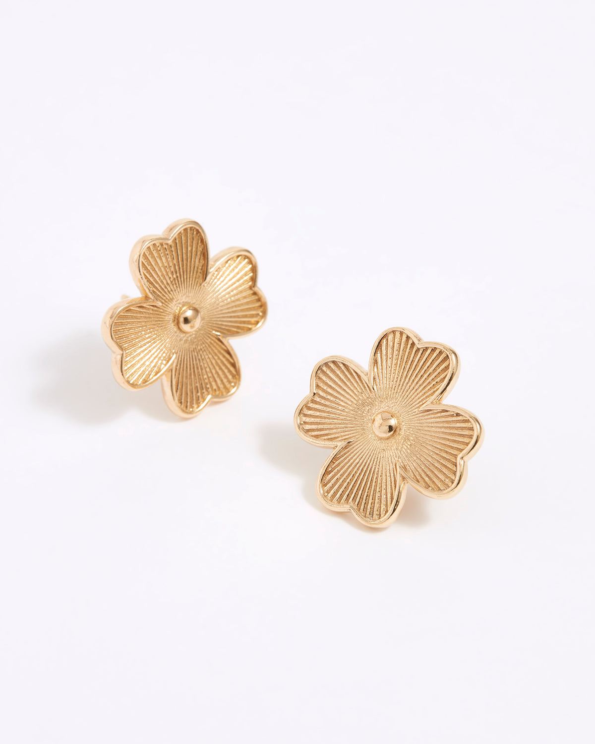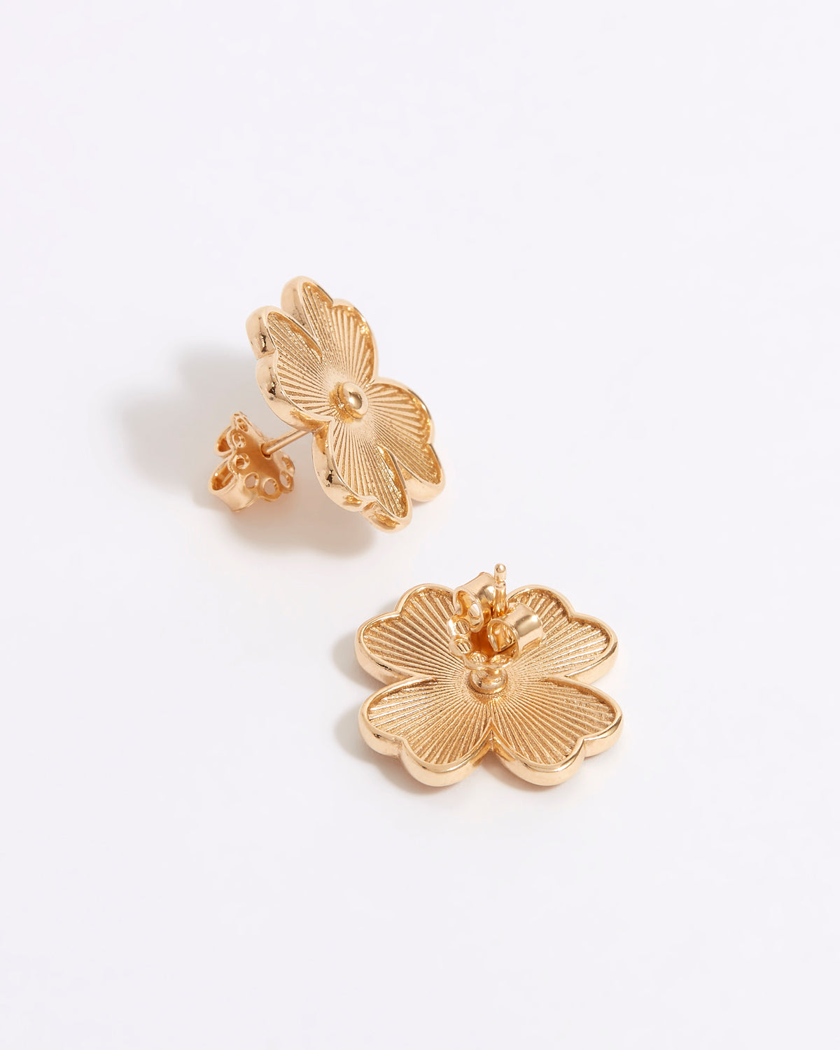 The Fortuna Earrings are hand crafted in Italy as beautiful four-leaf clover studs with 18k gold plated silver from a textured surface that catches the light for an elegant shimmer. Designed to bring a touch of good luck to your look while being effortlessly chic.