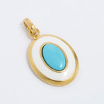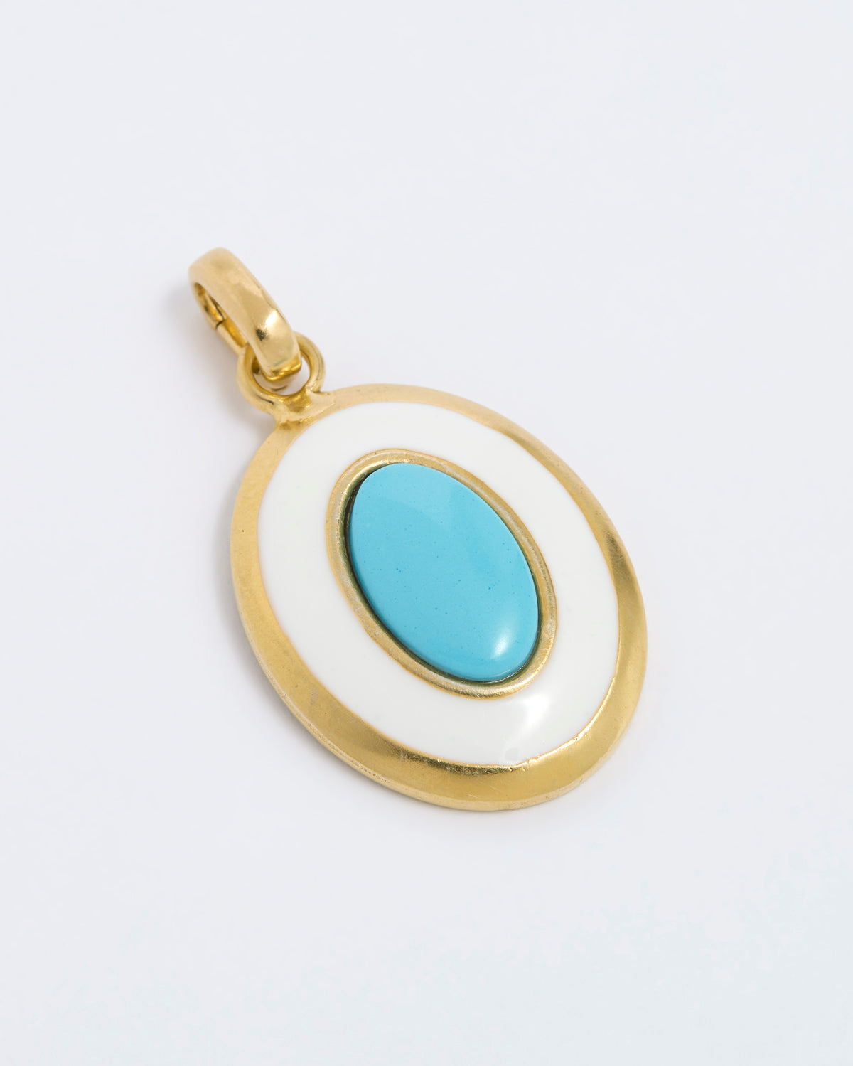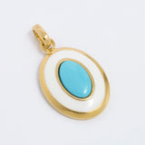 Our Ischia Charm features an oval turquoise surrounded by white enamel and framed in gold.