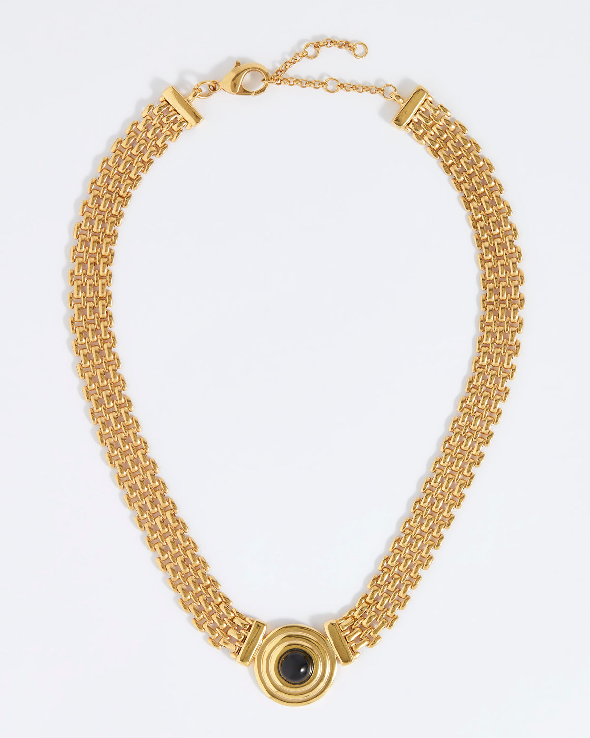 Our statement Roma Necklace features a domed black onyx gemstone set within a vintage style ridged setting and hung from a flat, fluid chain. Beautifully hand crafted in Italy using the finest materials, a timeless piece to treasure.