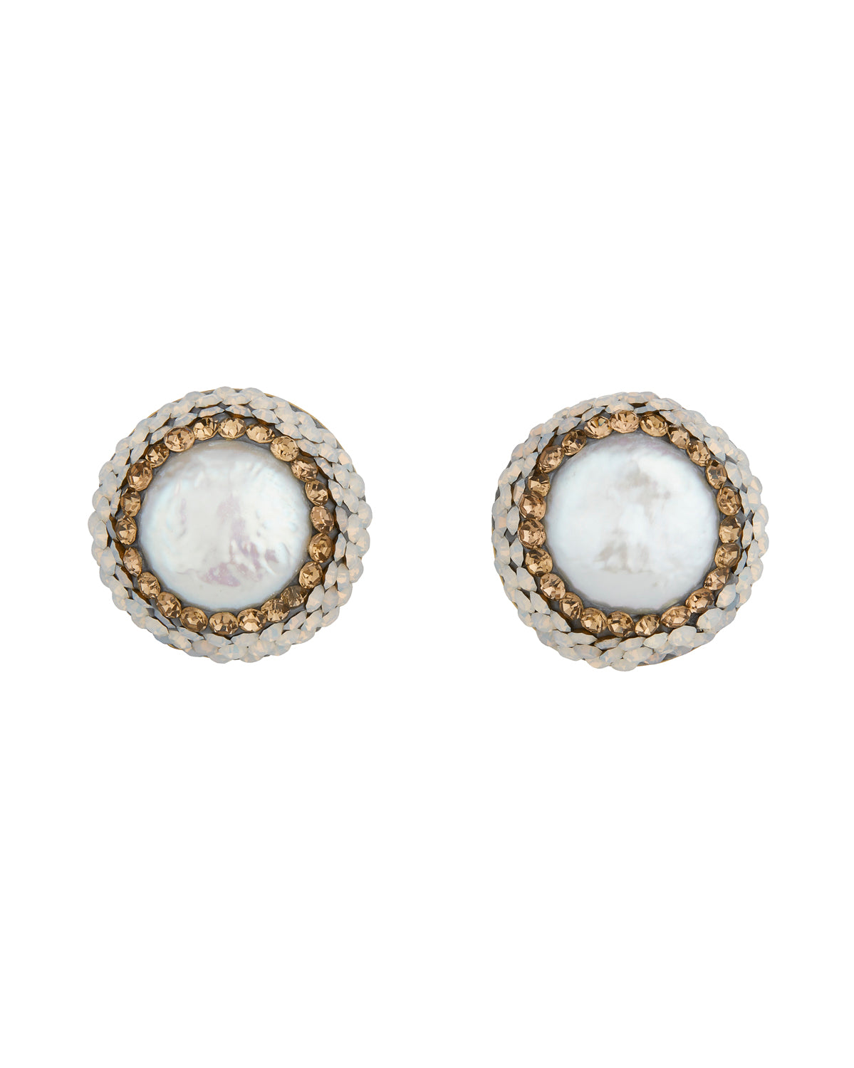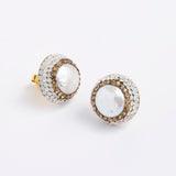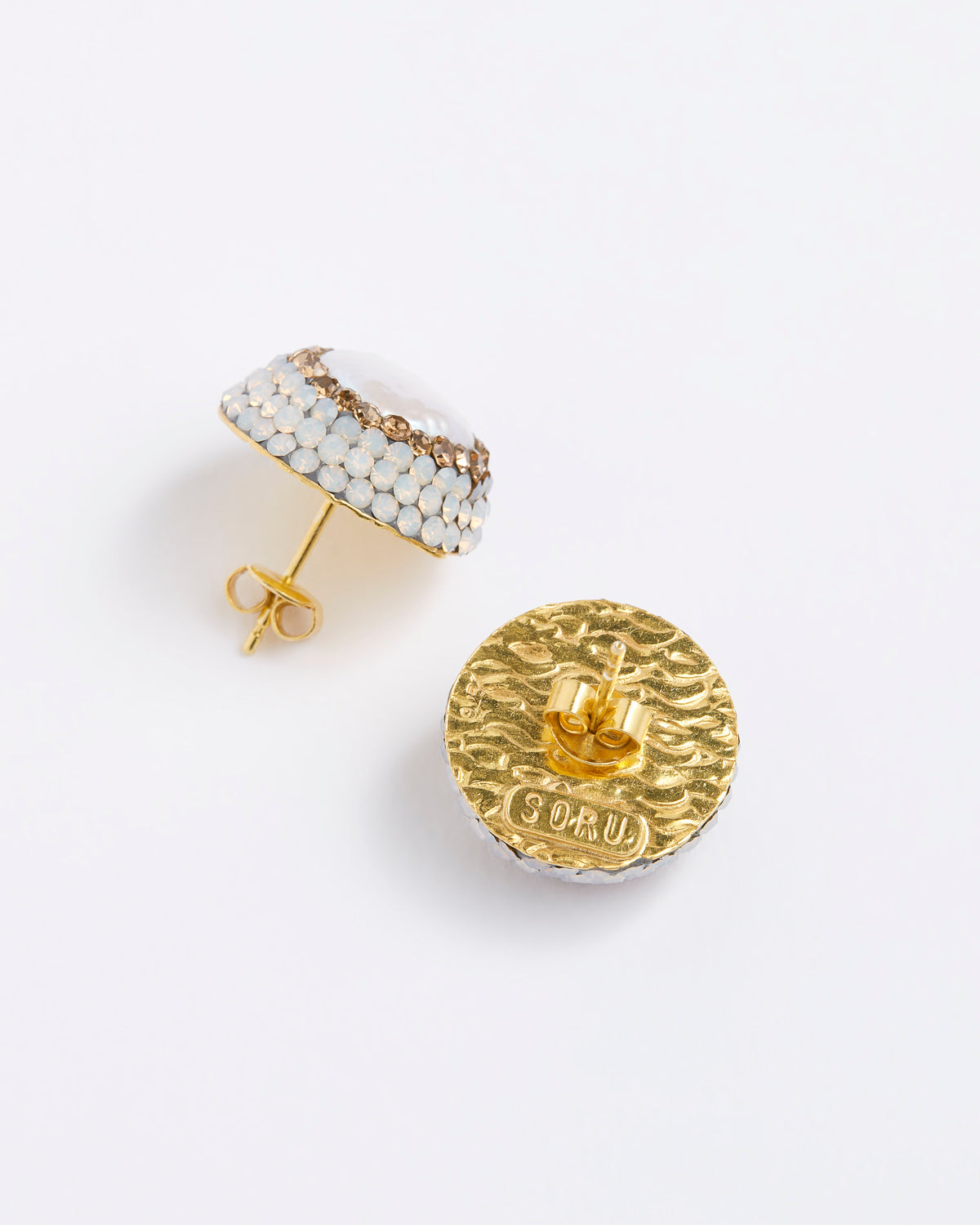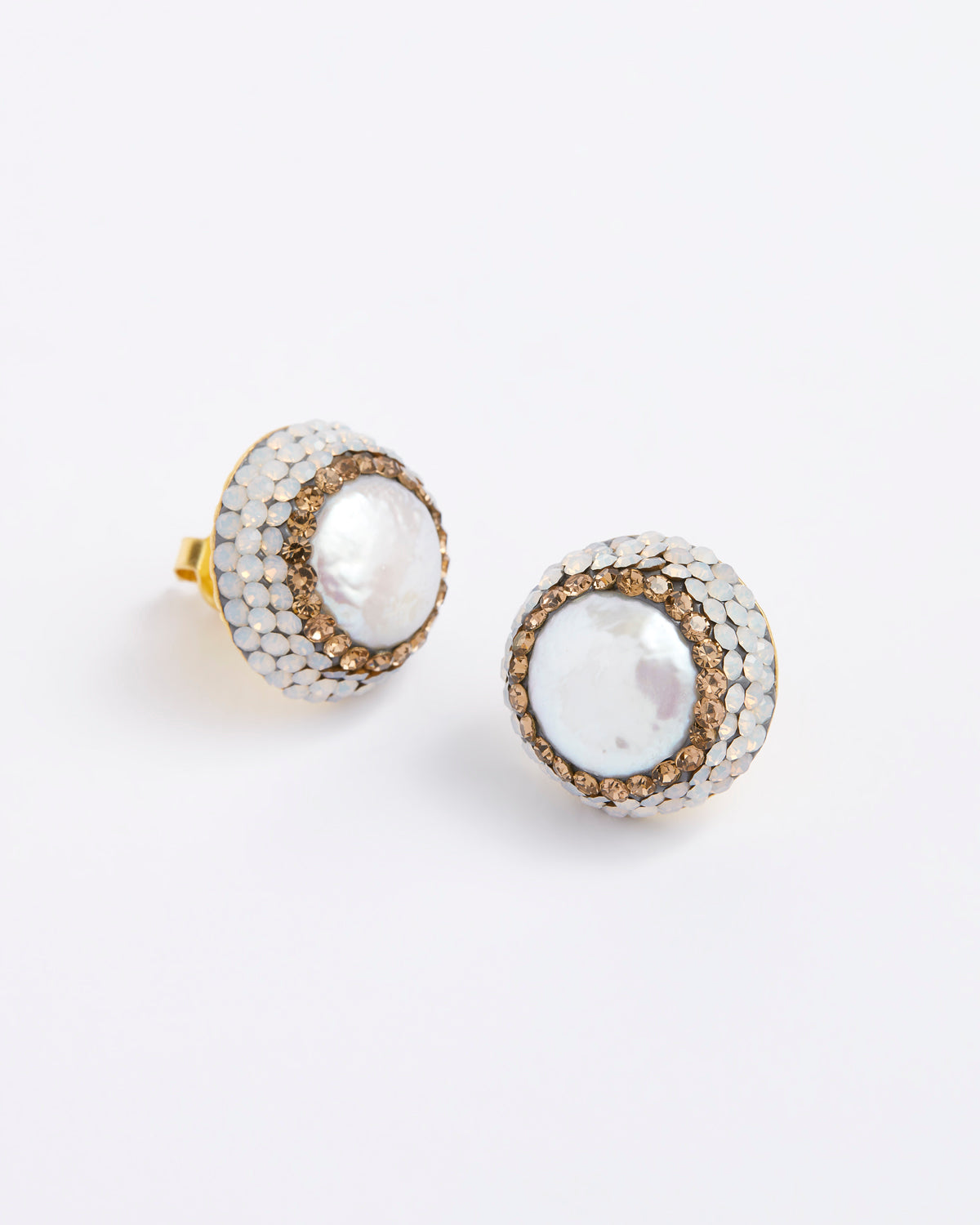 These beautiful studs feature baroque pearls set by hand within multi-faceted opal Swarovski crystals. Elegant and sparkling, these studs are perfect for all occasions.