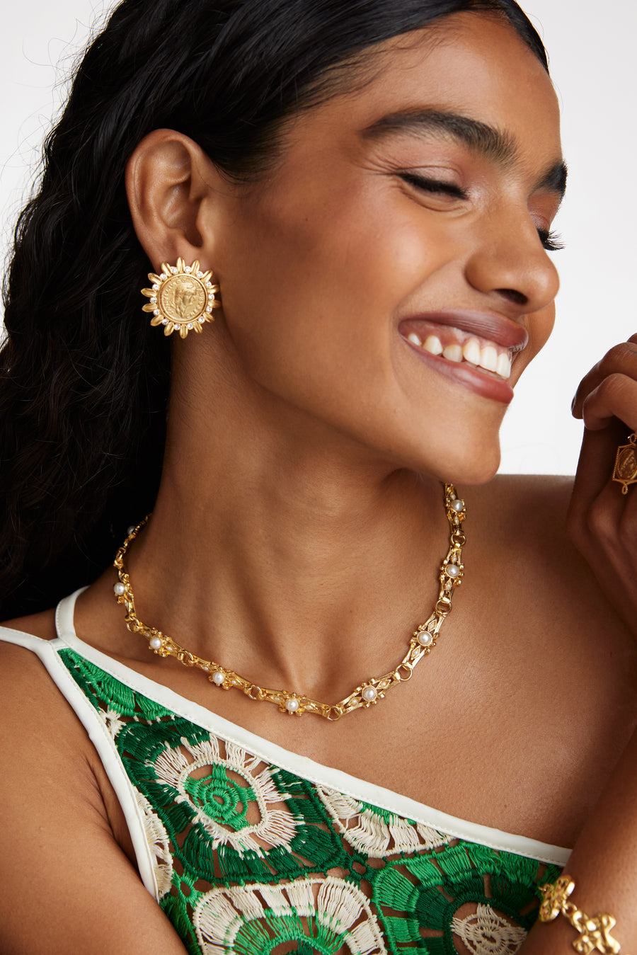 We use natural gemstones and baroque pearls within our gold plated silver collection which may contain internal inclusions, irregular edges, uneven surfaces and variations in the colours. No two gems are the same, adding to the beauty and uniqueness of each individual gem.