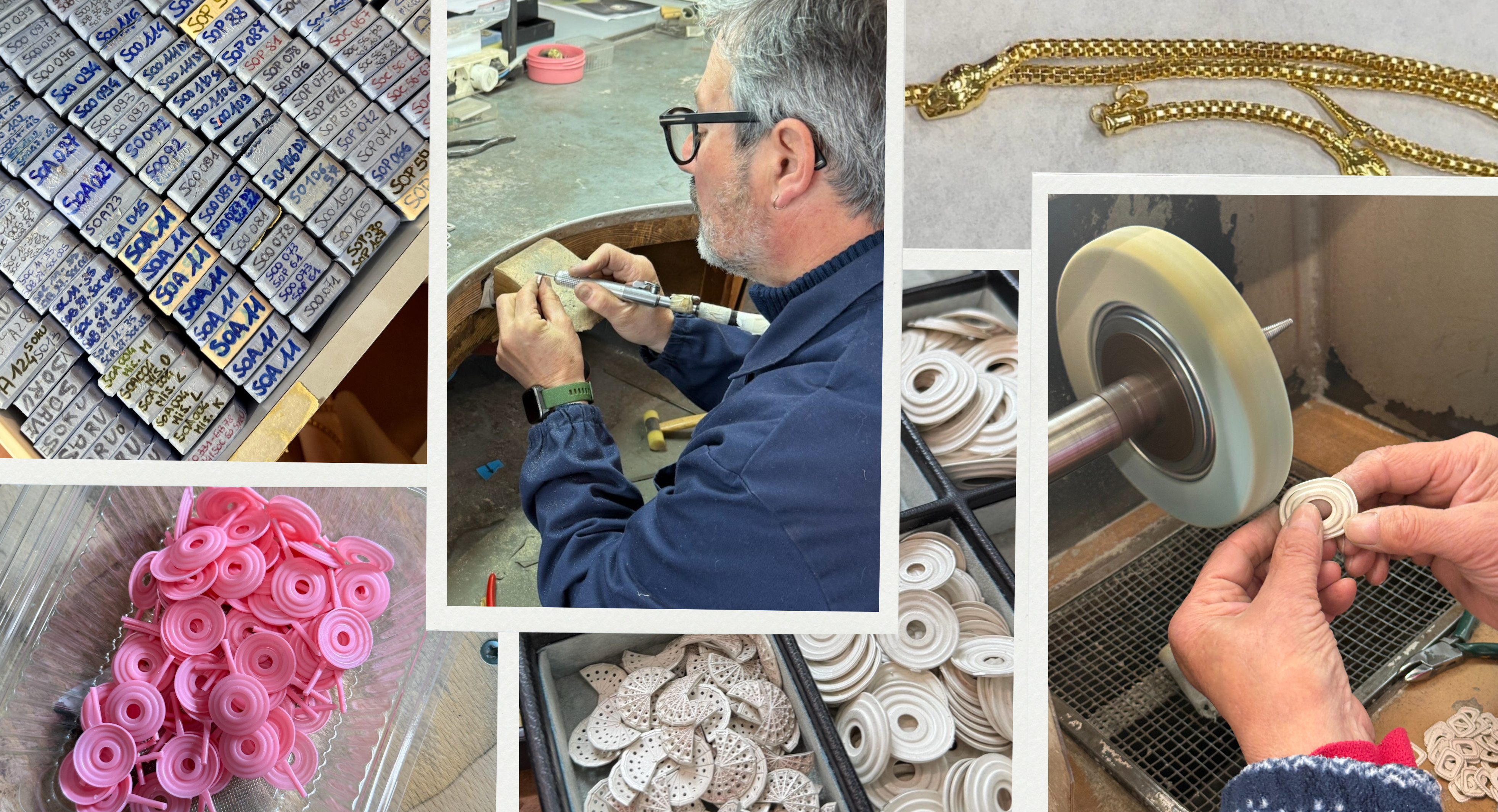 Our Tuscan partners, pictured here, are a perfect example. Even the water used to clean the jewellery after plating and polishing is purified before being released back into the surrounding countryside.