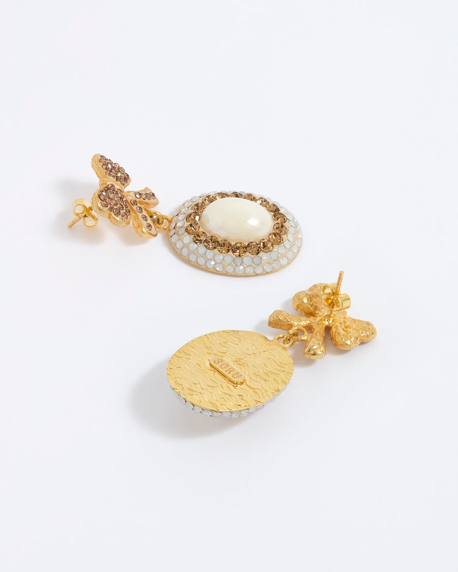 Discover our beautiful bow earrings, where modern sophistication meets luxurious crystal embellishments and a lustrous majorca pearl center. Perfectly crafted to add a touch of refined sparkle, these earrings are the ultimate statement of style.