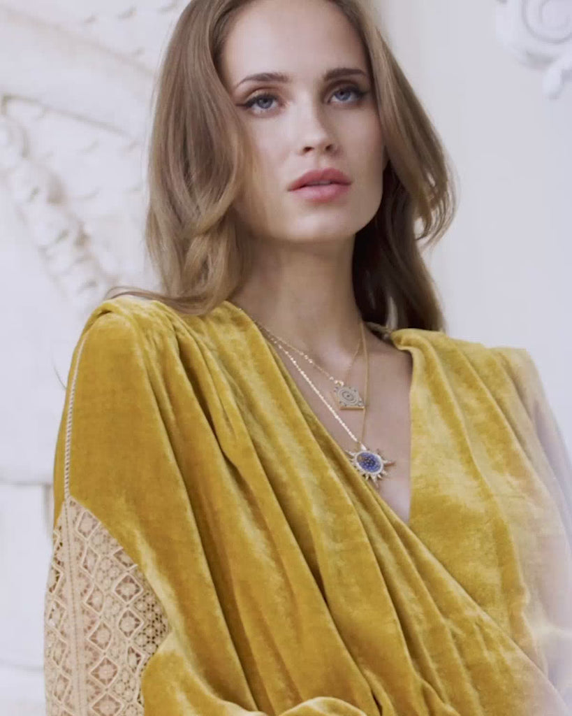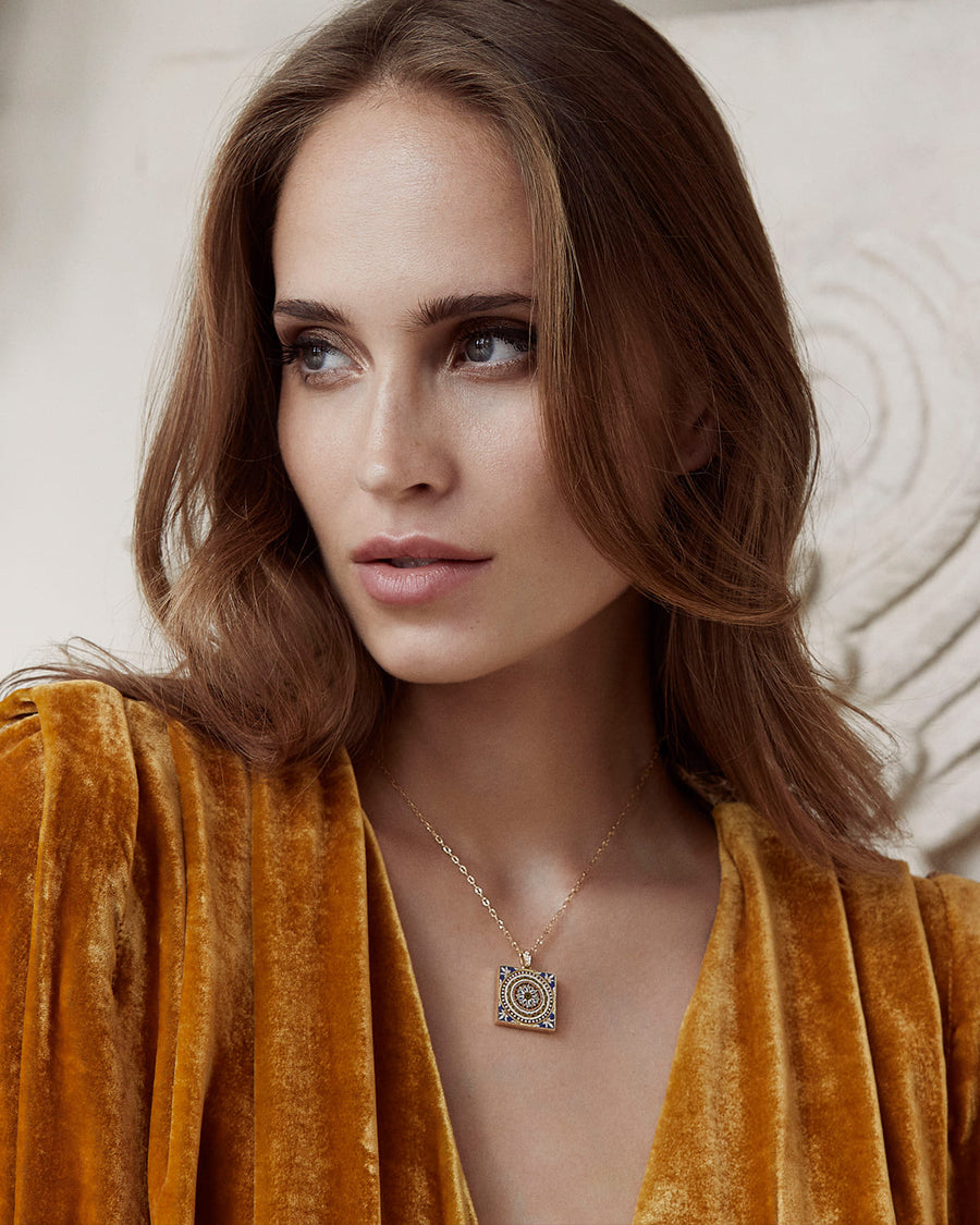 One of our most special pieces, this one-of-a-kind necklace is inspired by a majolica tile. Majolica is a style of tin-glazed earthenware and pottery, most notably from 15th century renaissance-era Italy.