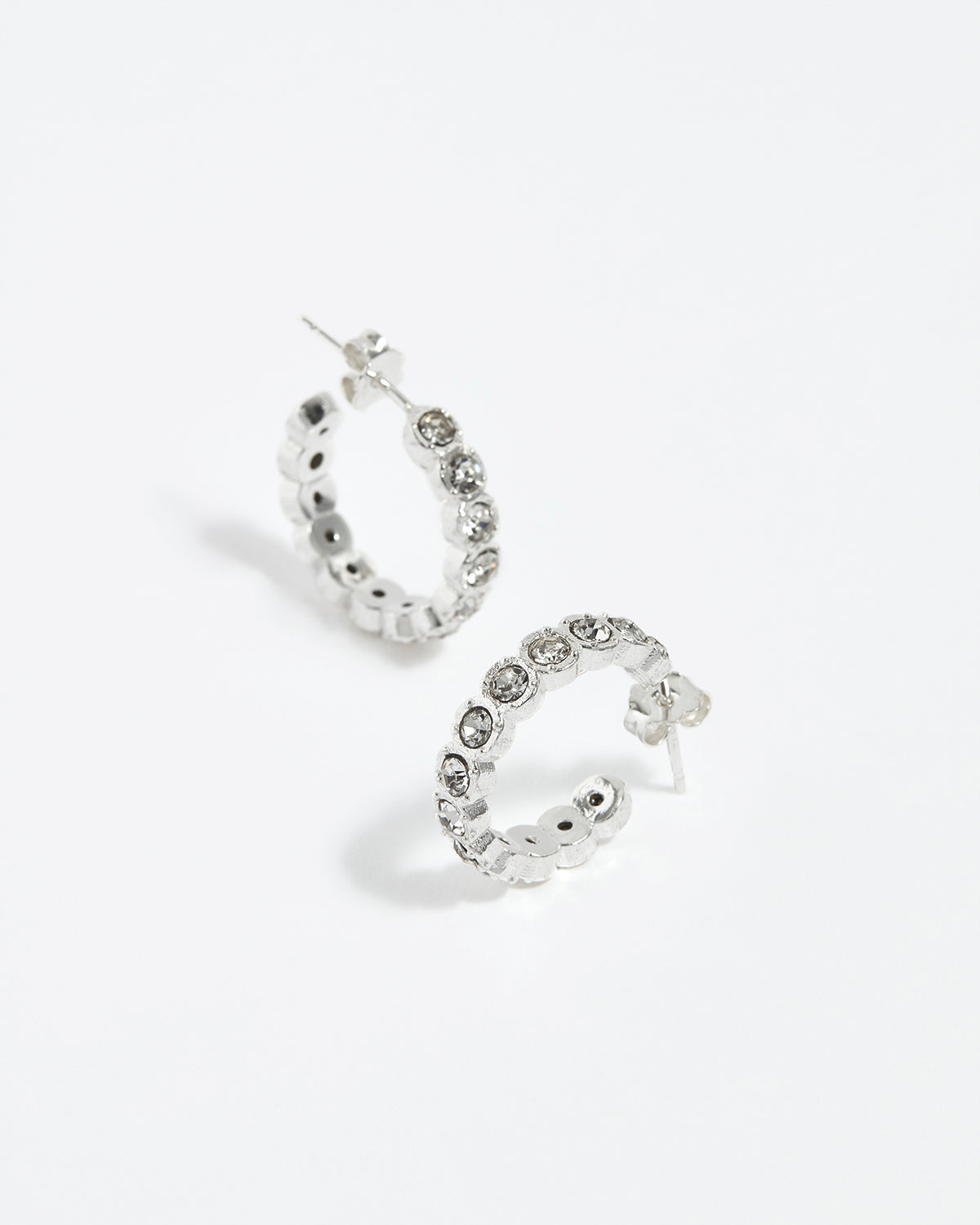 These lightweight easy-to-wear earrings are designed for everyday and look wonderful worn alone as well as with other small hoops and earrings. With clear crystals set in rhodium plated silver, they give a wonderful sparkle that elevates any outfit.